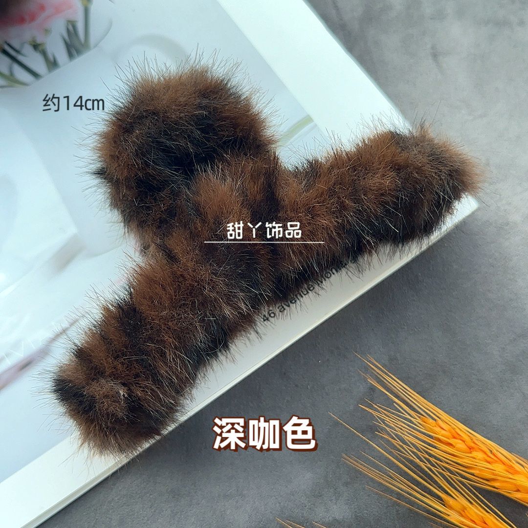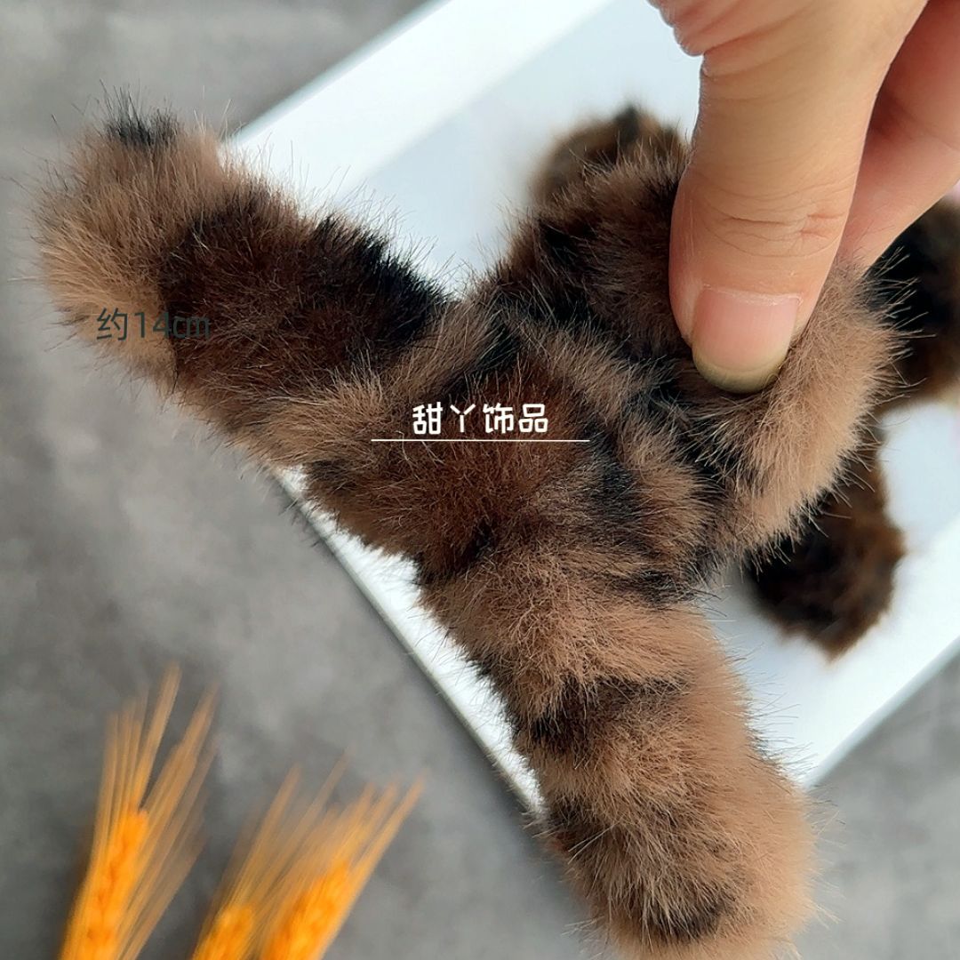 颜色 浅咖色豹纹--毛绒抓夹大号【约14㎝】,深咖色豹纹--毛绒抓夹大号【约14㎝】