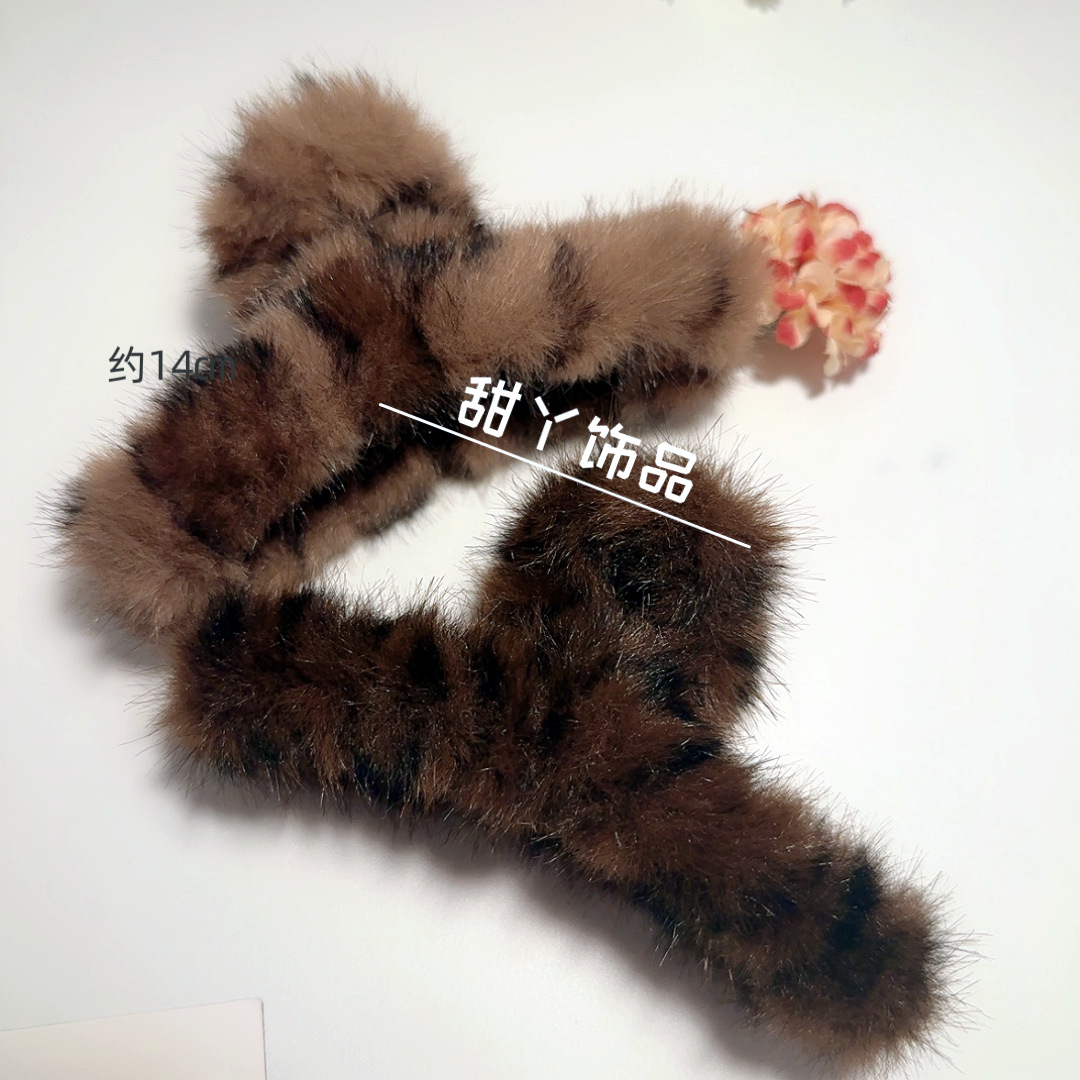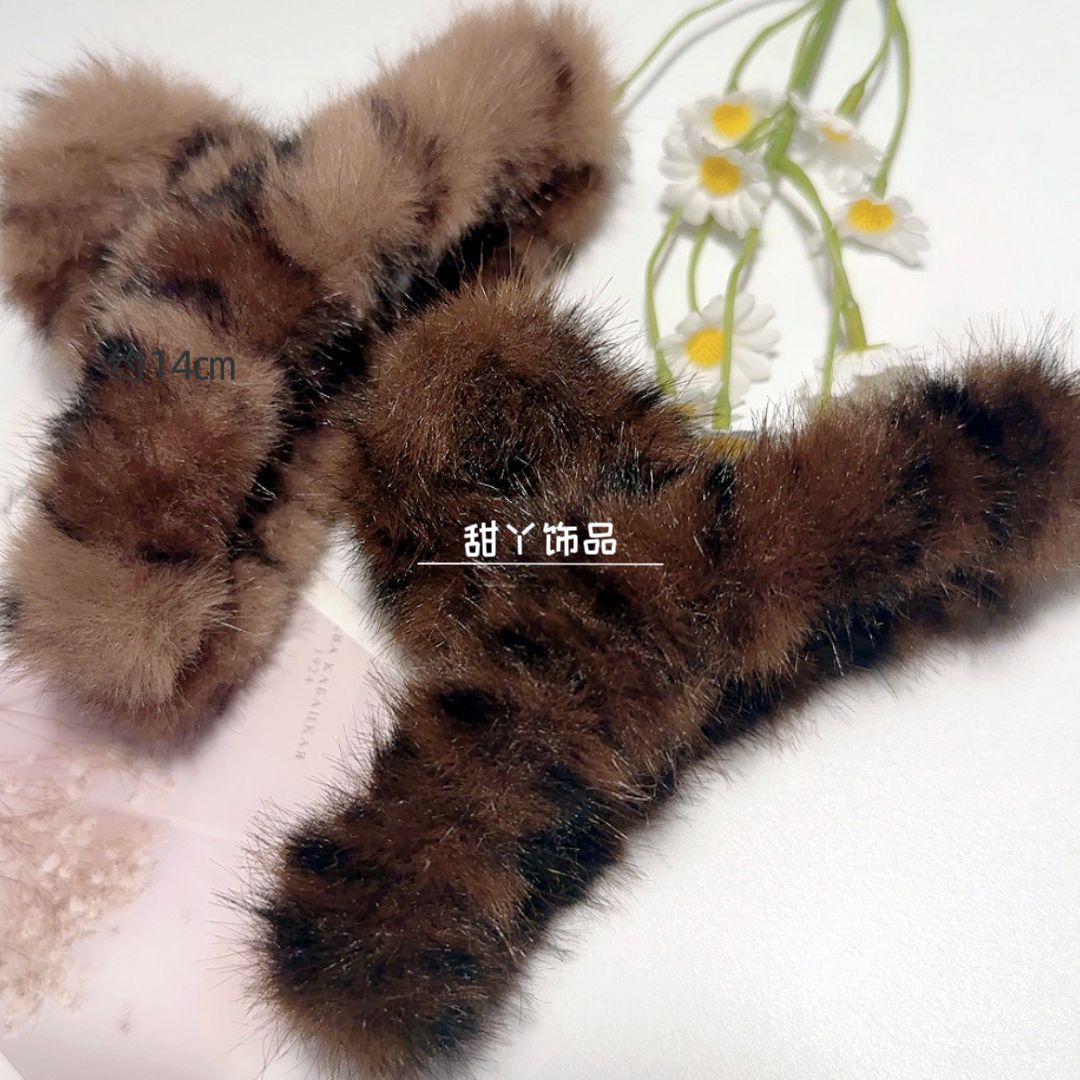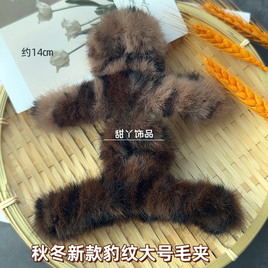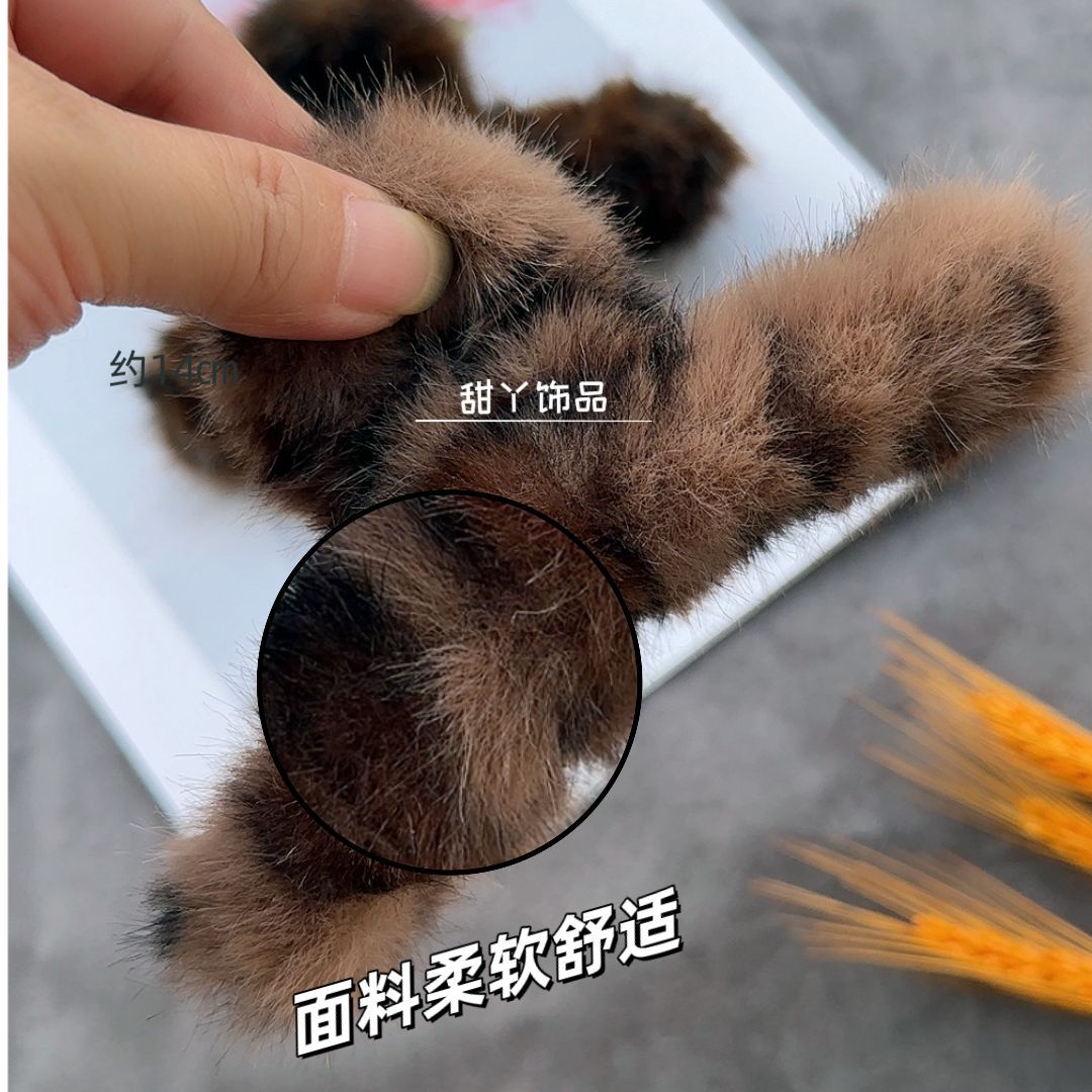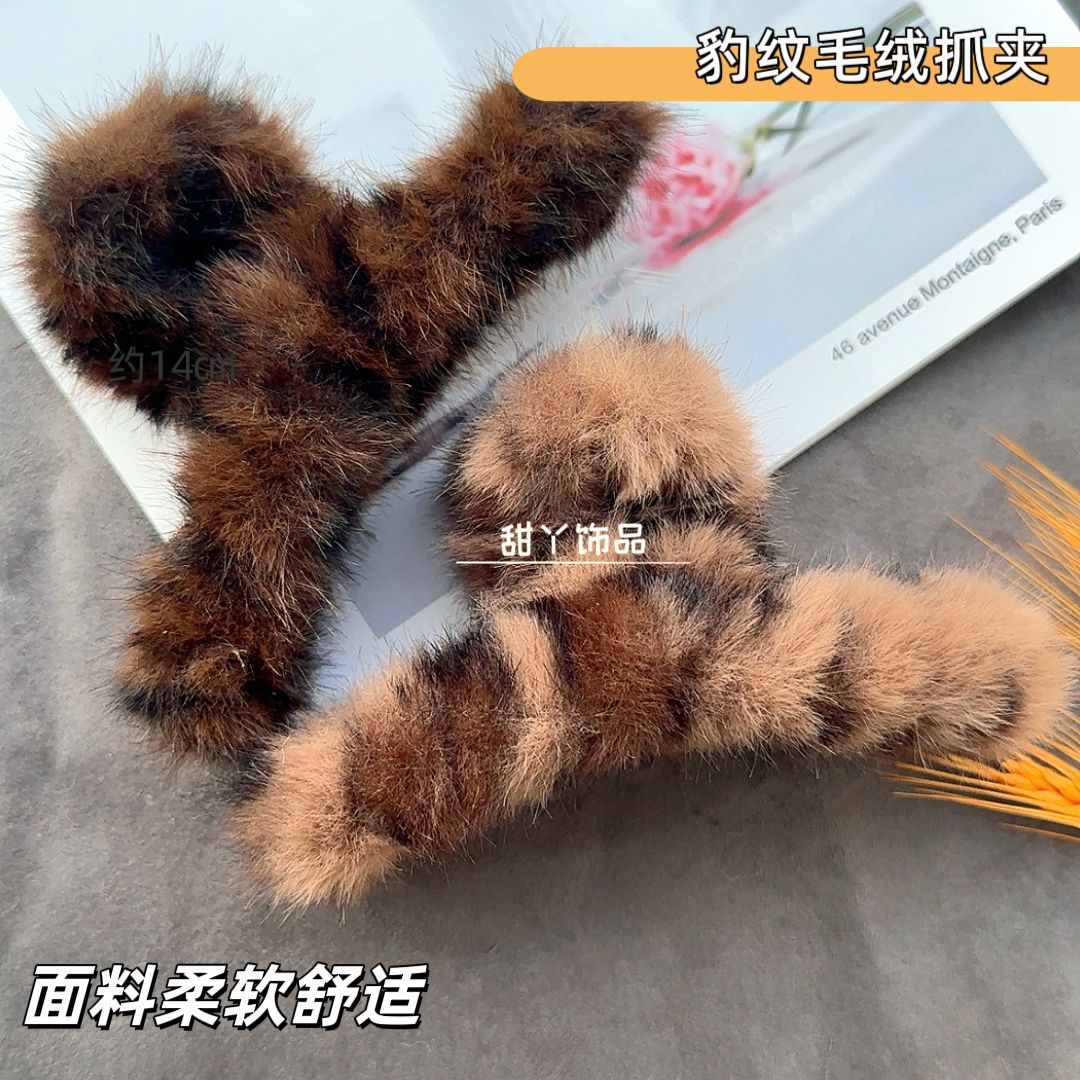 秋冬新款豹纹毛绒发夹时尚抓夹后脑勺盘发鲨鱼夹大号发量多盘发夹