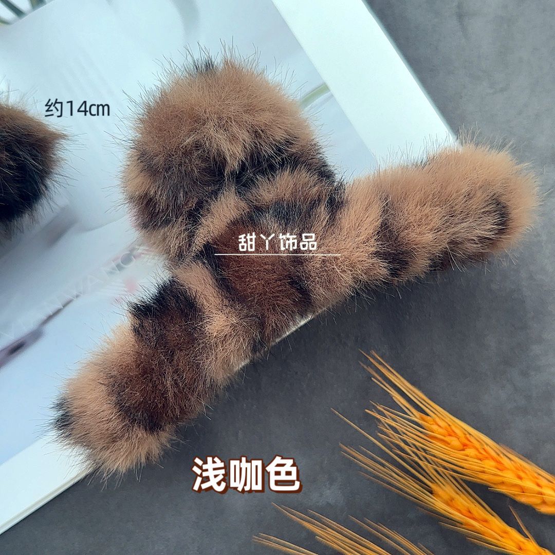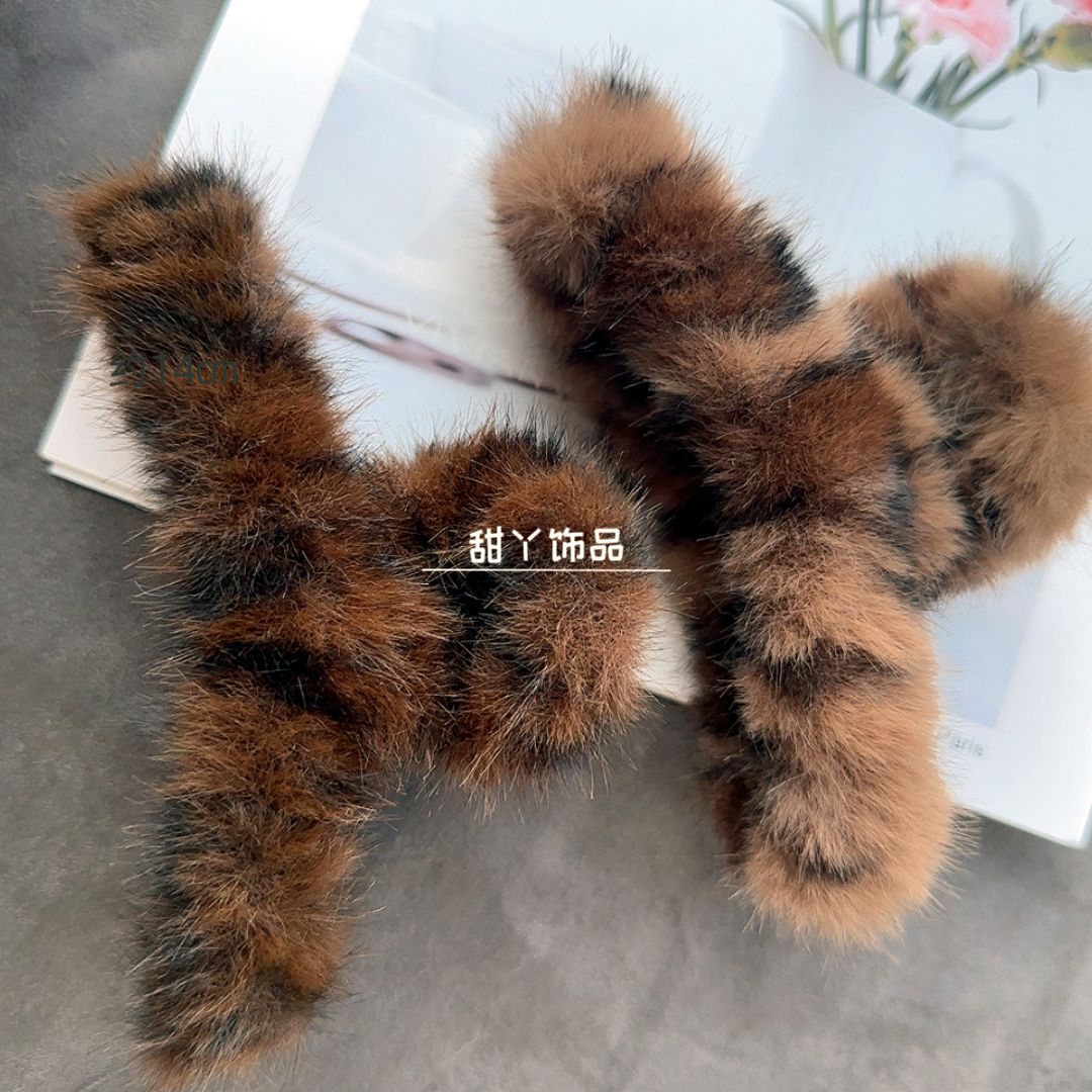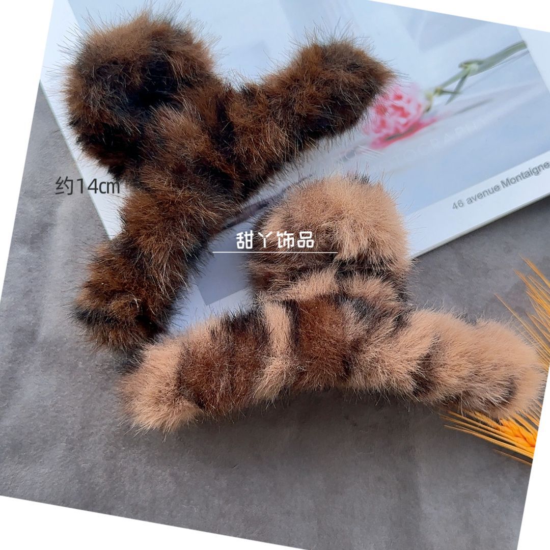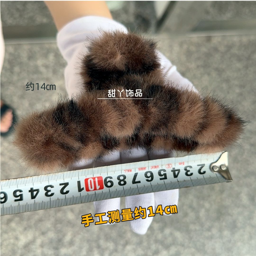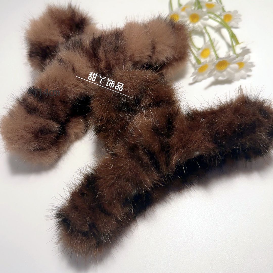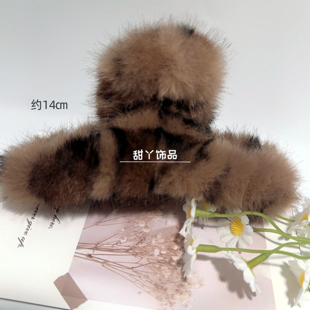 秋冬新款豹纹毛绒发夹时尚抓夹后脑勺盘发鲨鱼夹大号发量多盘发夹