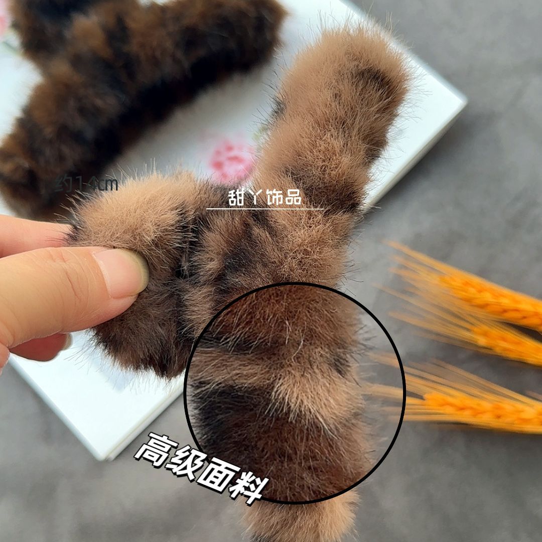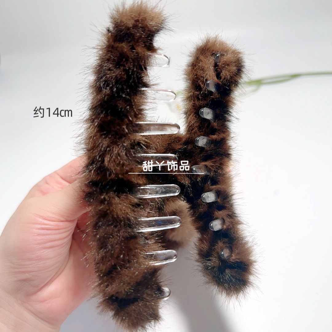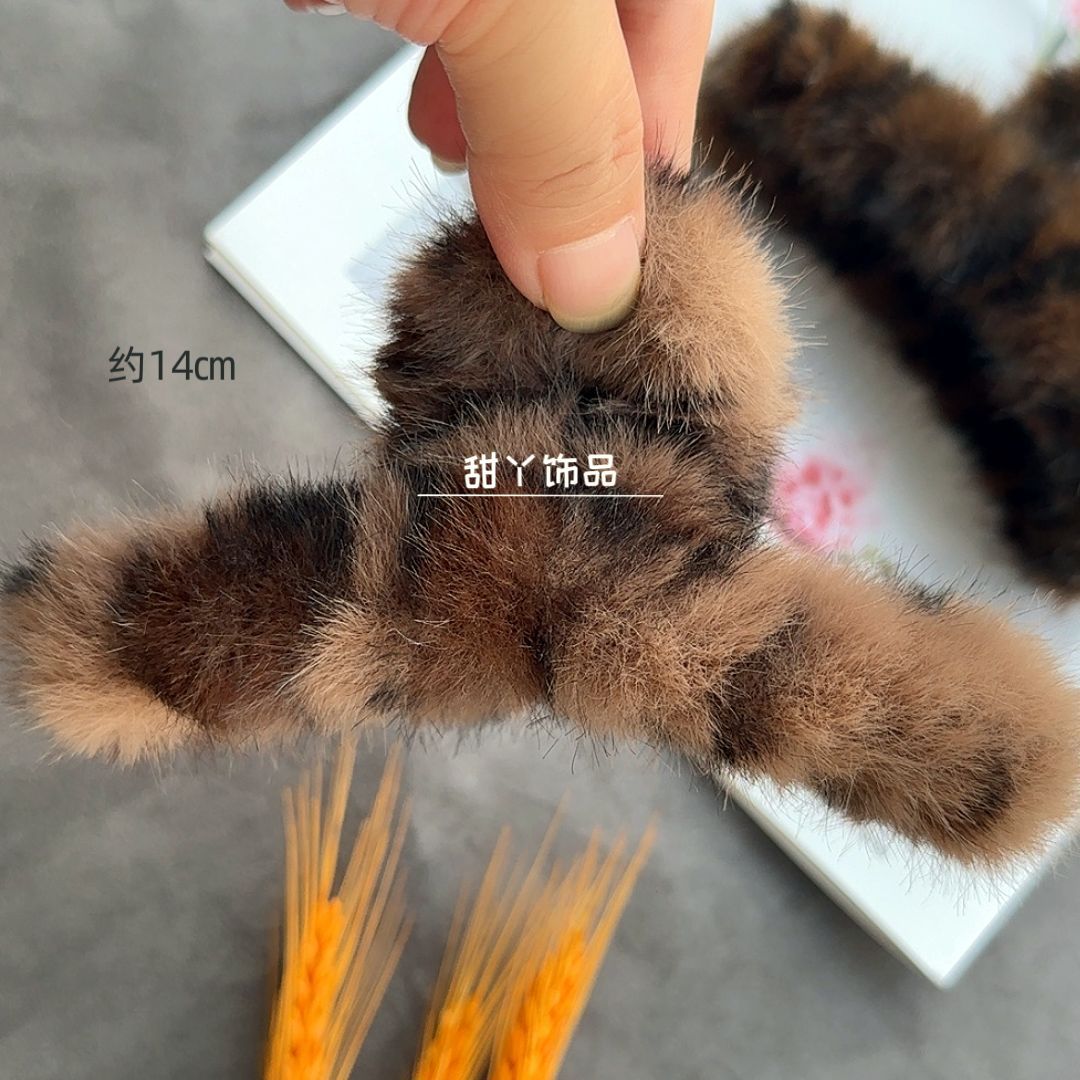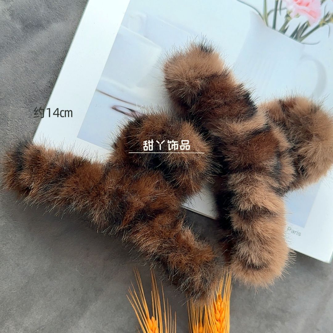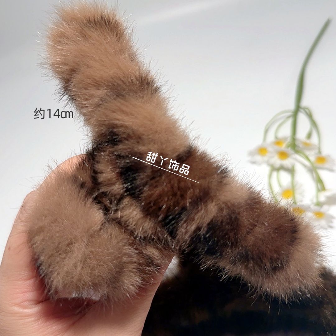 秋冬新款豹纹毛绒发夹时尚抓夹后脑勺盘发鲨鱼夹大号发量多盘发夹