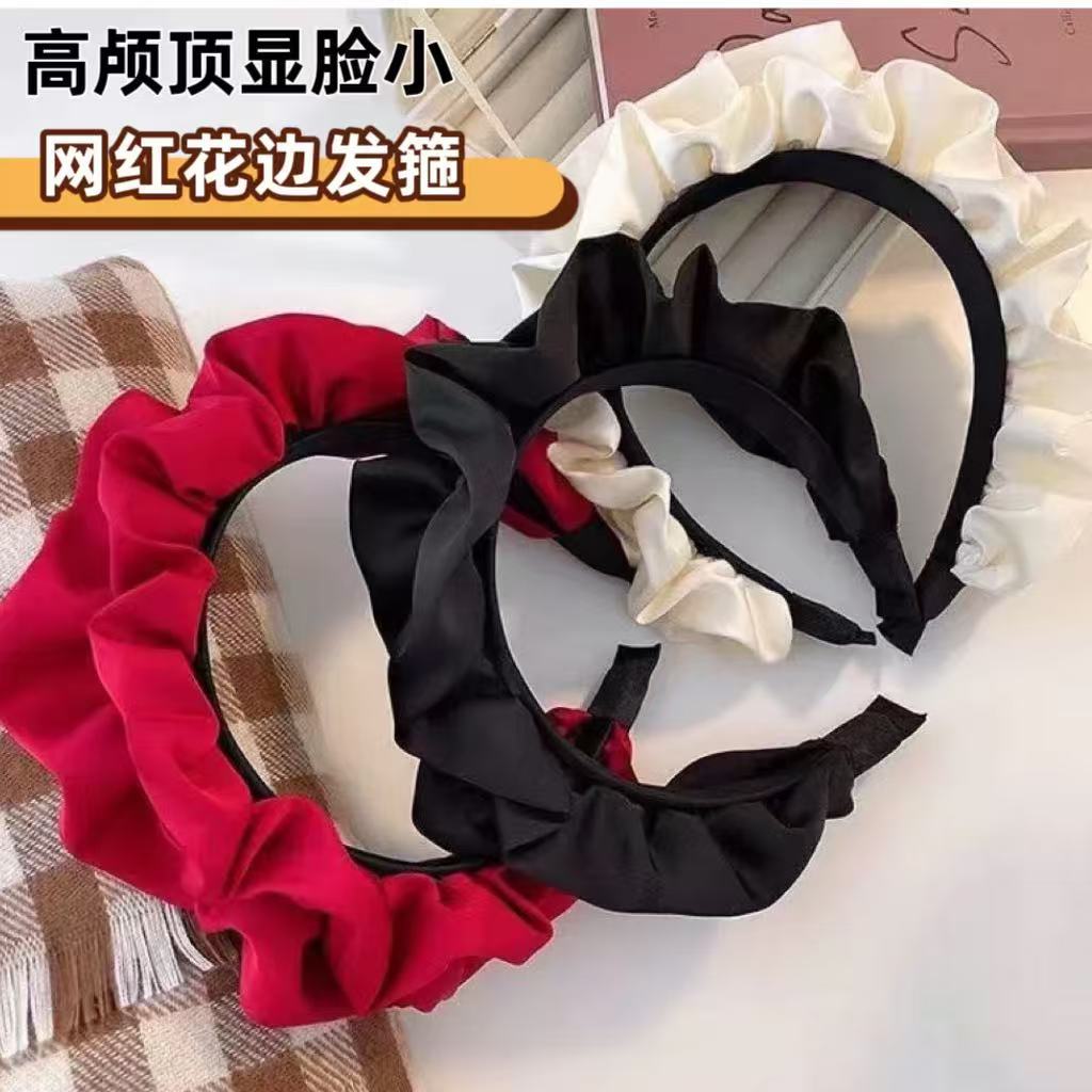 新しいスタイルのヘアフープ、高頭頂部、しわ、顔が見える、小さなヘッドバンド、女性が外で着用できる、気質、インターネットセレブのヘアピン、女性用の新しいスタイルのレースのヘアフープ
