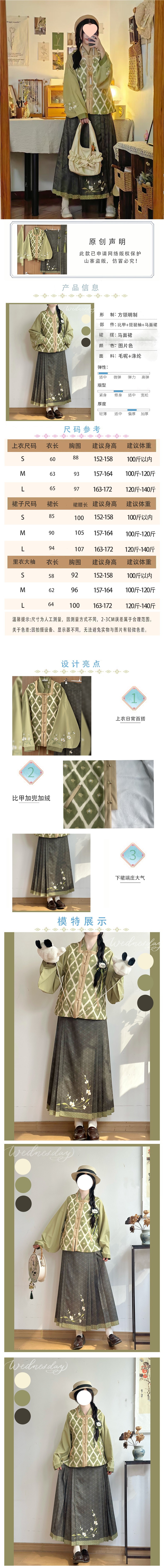 栀言记原创【糯糯奶绿】明制方领比甲明制加厚绒汉服女马面裙秋冬