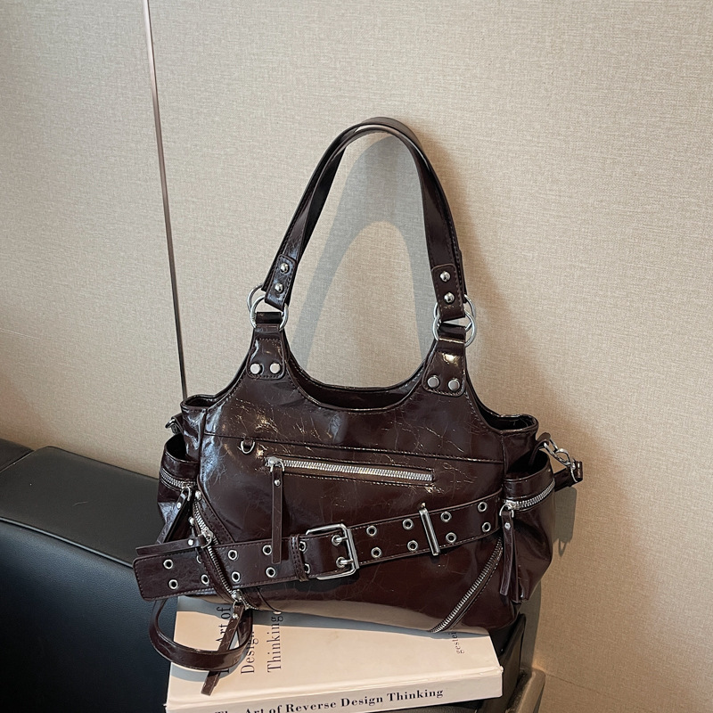 高级质感复古通勤托特包包女2025冬季新款时尚铆钉甜酷单肩斜挎包