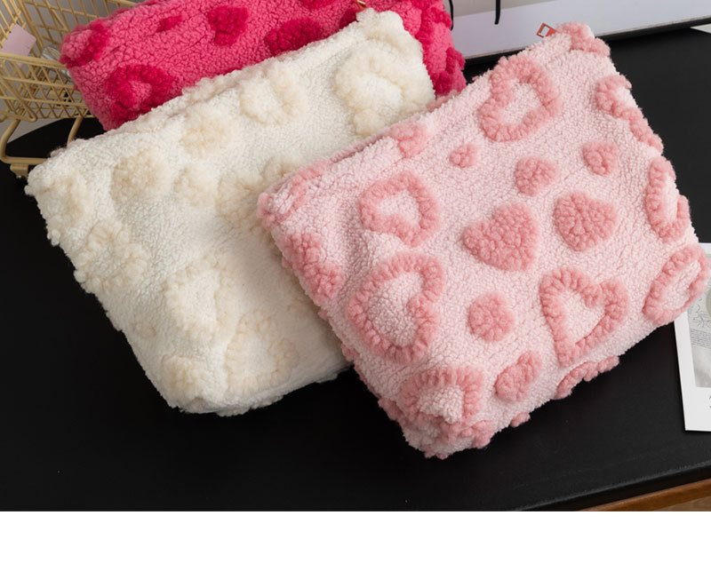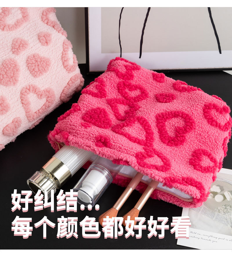 2025冬季新款毛绒清新可爱爱心化妆包便携护肤品口红收纳包手拿包