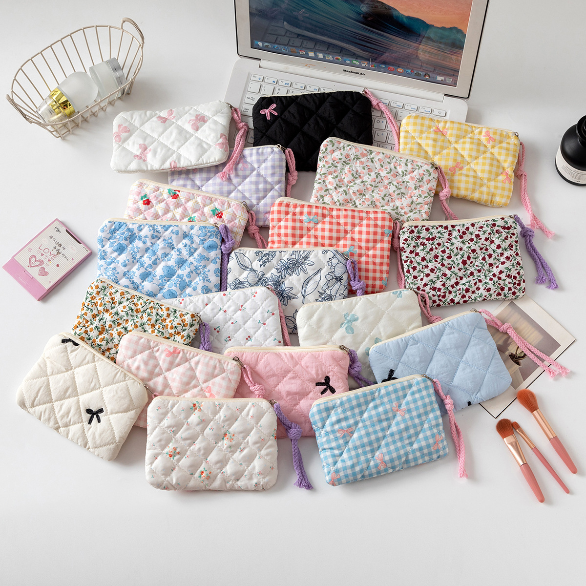 新款碎花绗缝口红收纳包女士化妆品收纳包耳机数据线化妆包钱包