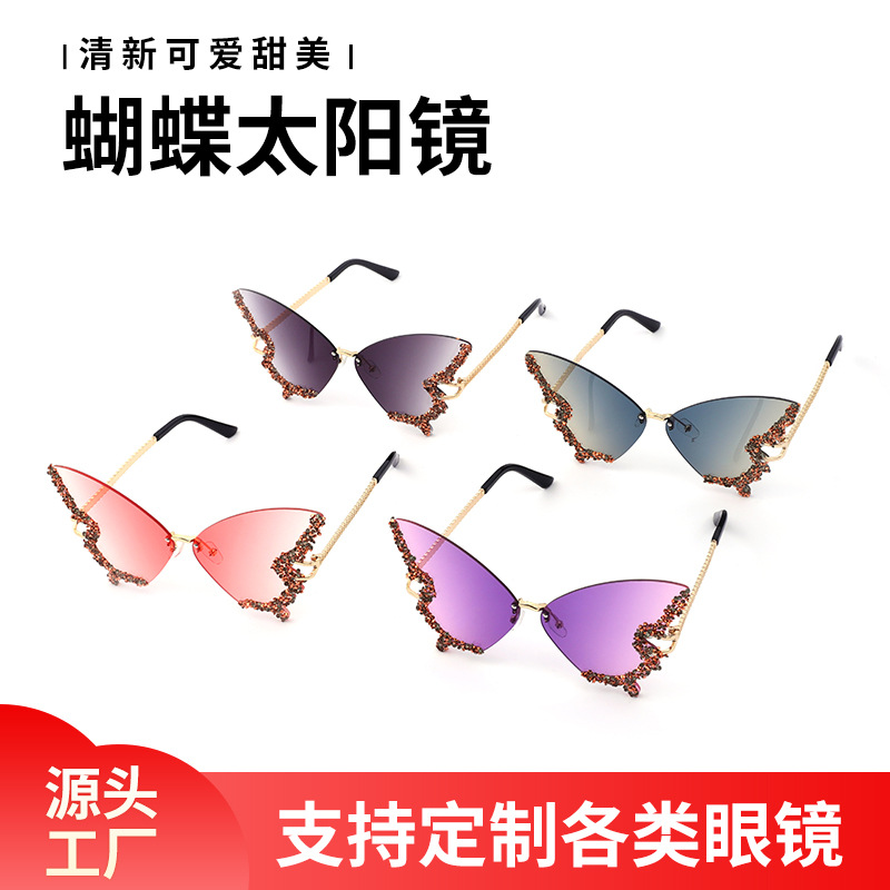 新型のダイヤモンド蝶の縁なしサングラス蝶の形はサングラスのパーティーのファッションのファッションのサングラスを責めます。