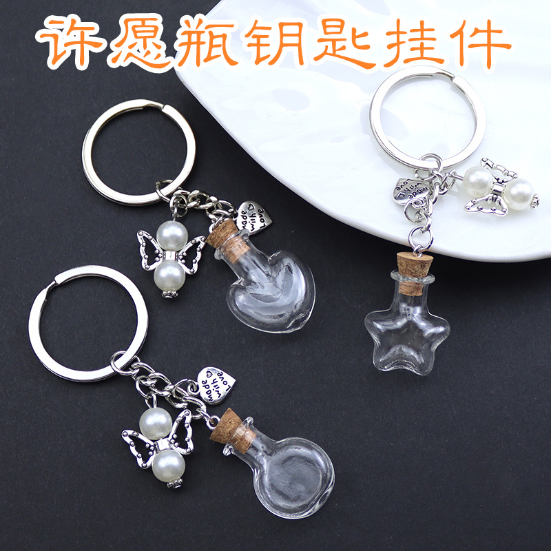 创意爱心天使迷你透明玻璃瓶钥匙扣心形水滴许愿漂流瓶包包挂件