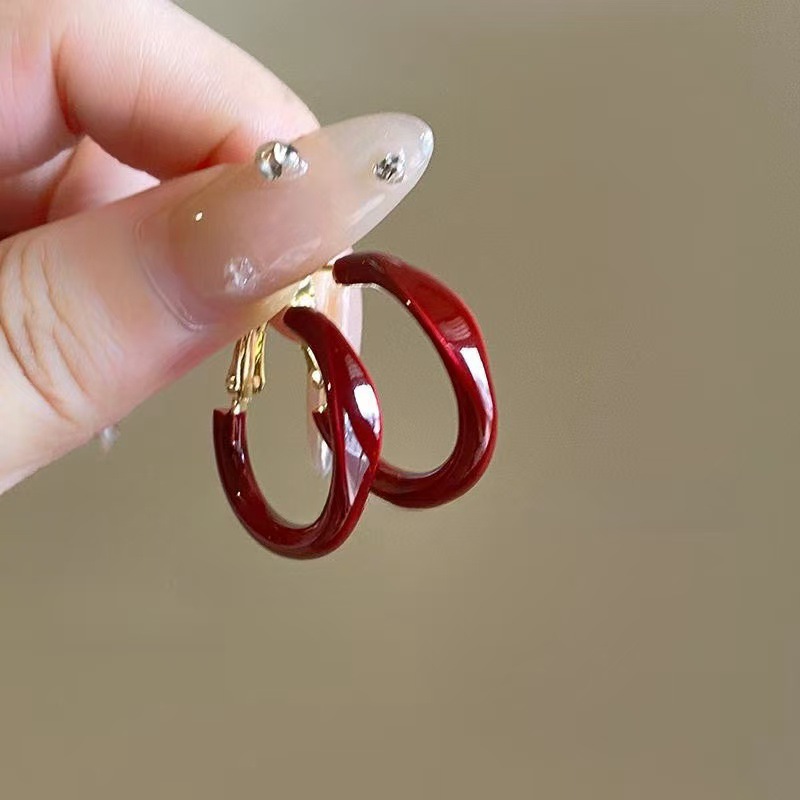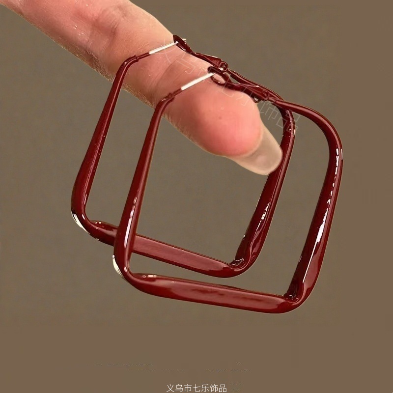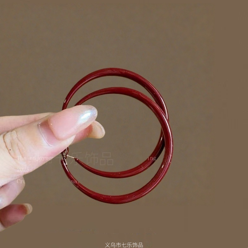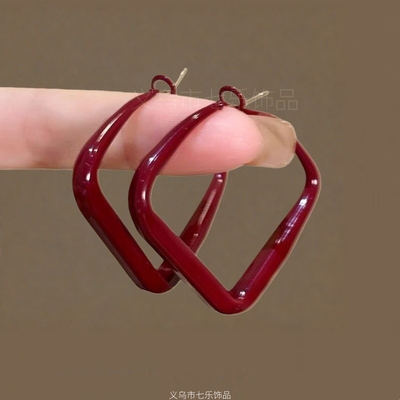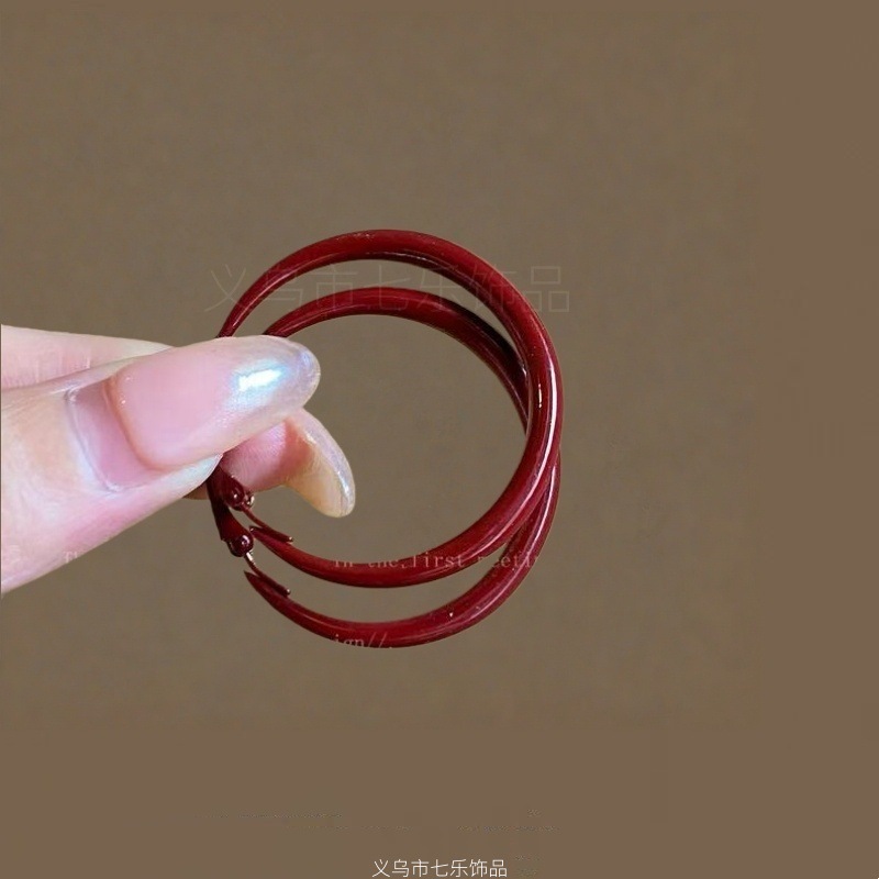浪漫不止_复古安可拉红几何圈圈耳环女ins港风气质高级感显白耳饰