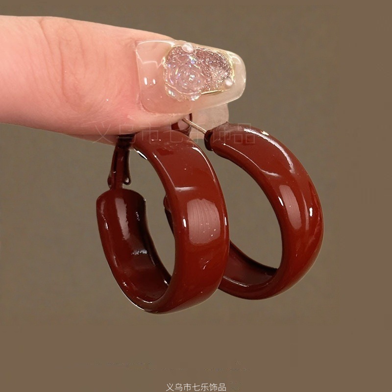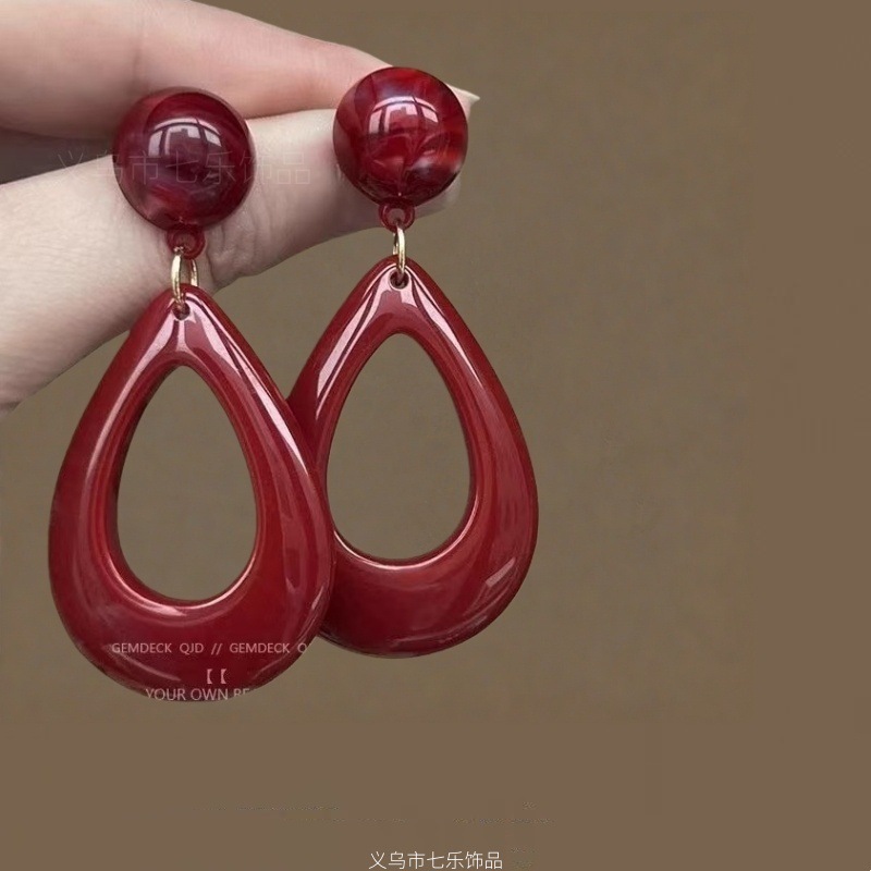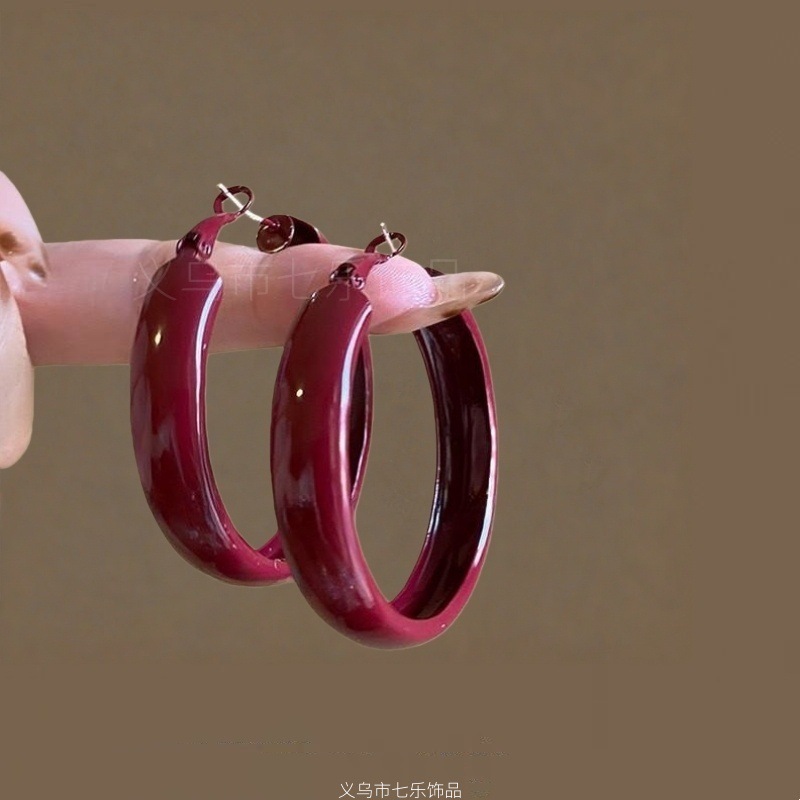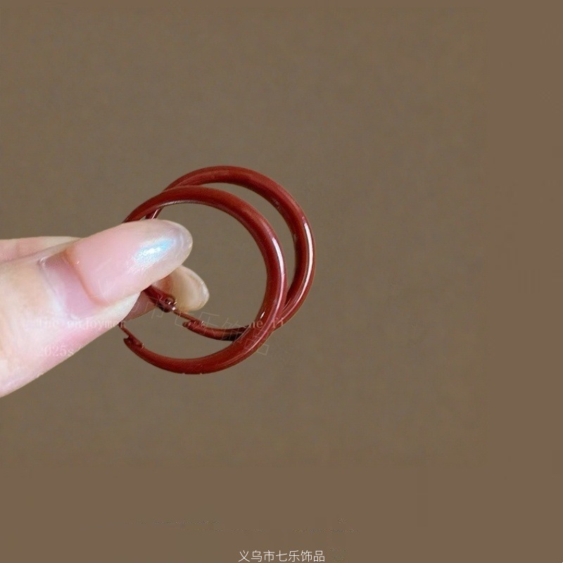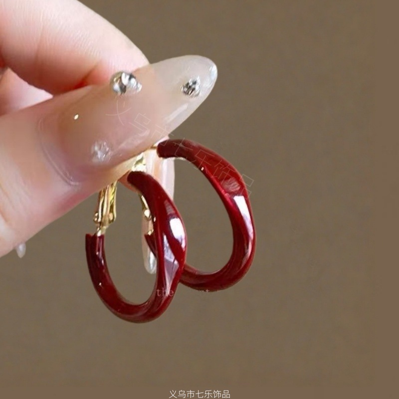 浪漫不止_复古安可拉红几何圈圈耳环女ins港风气质高级感显白耳饰