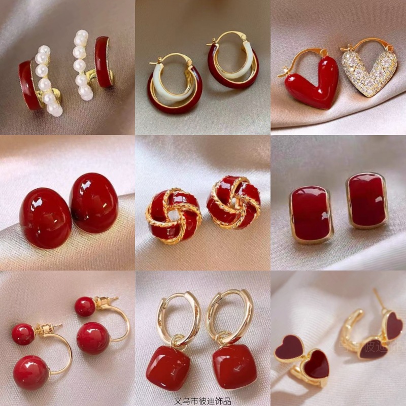 秋冬新年耳钉高级感安可拉红色女气质高级感小众耳环百搭耳饰批发
