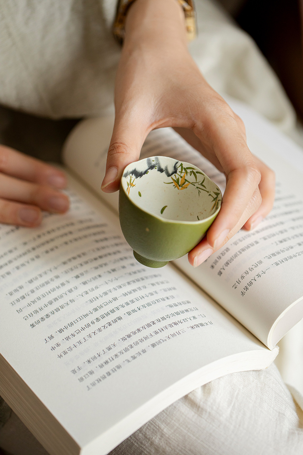 墨己玉泥青花竹逸品茗杯カンフー茶器陶磁器釉薬下手描きシングルカップ家庭用お茶カップ