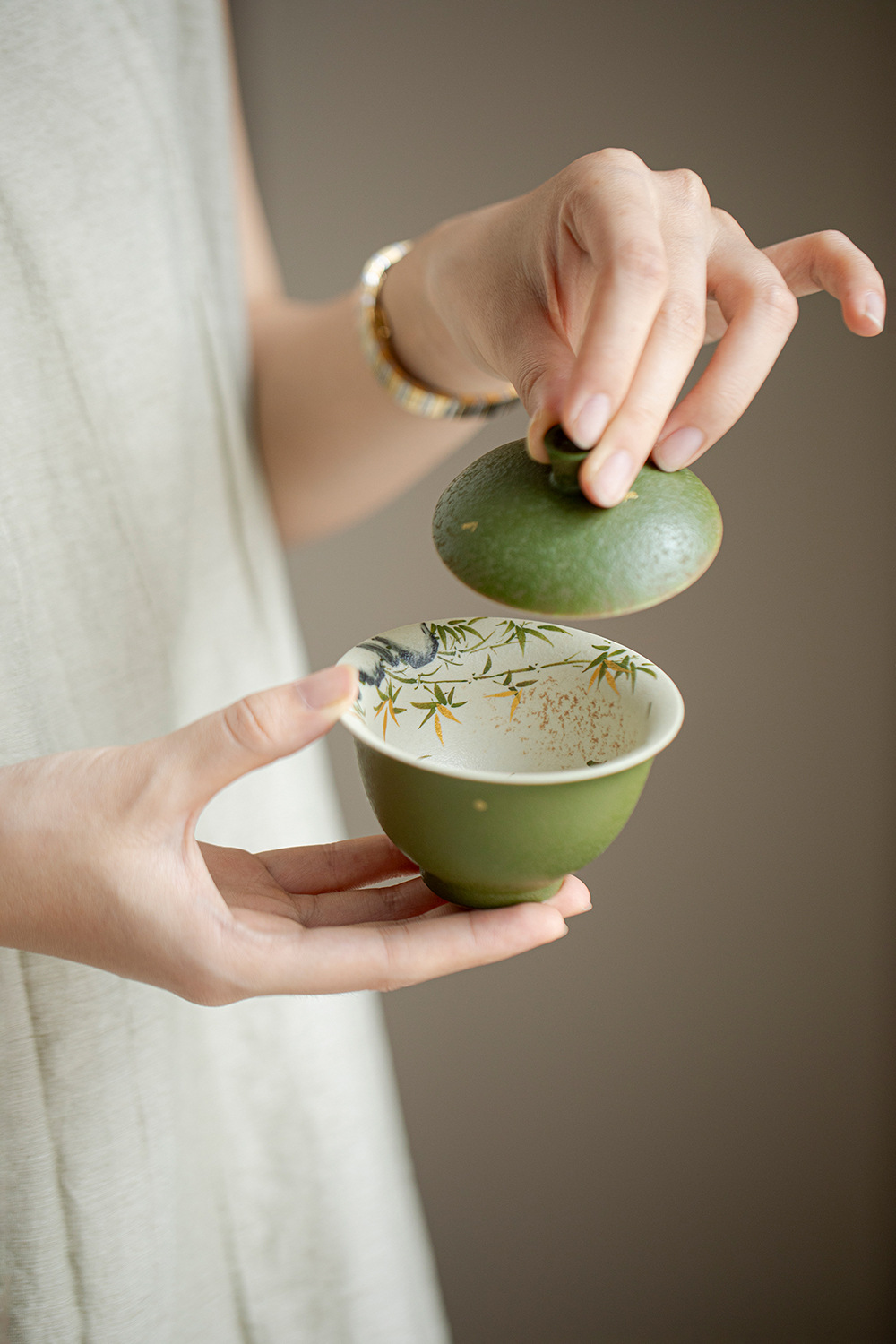 墨己小青柑金竹听风手绘仿古茶具合集家用茶壶盖碗壶承茶杯主人杯