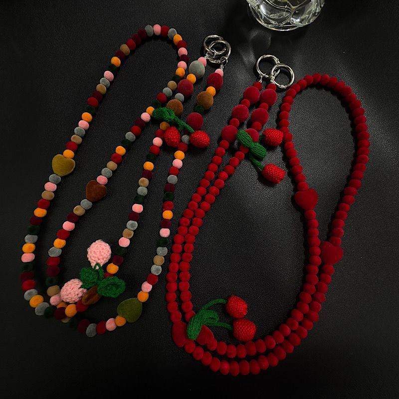 款手机挂绳秋冬款精致高级感毛绒圆球串珠长款斜挎可背吊绳防丢