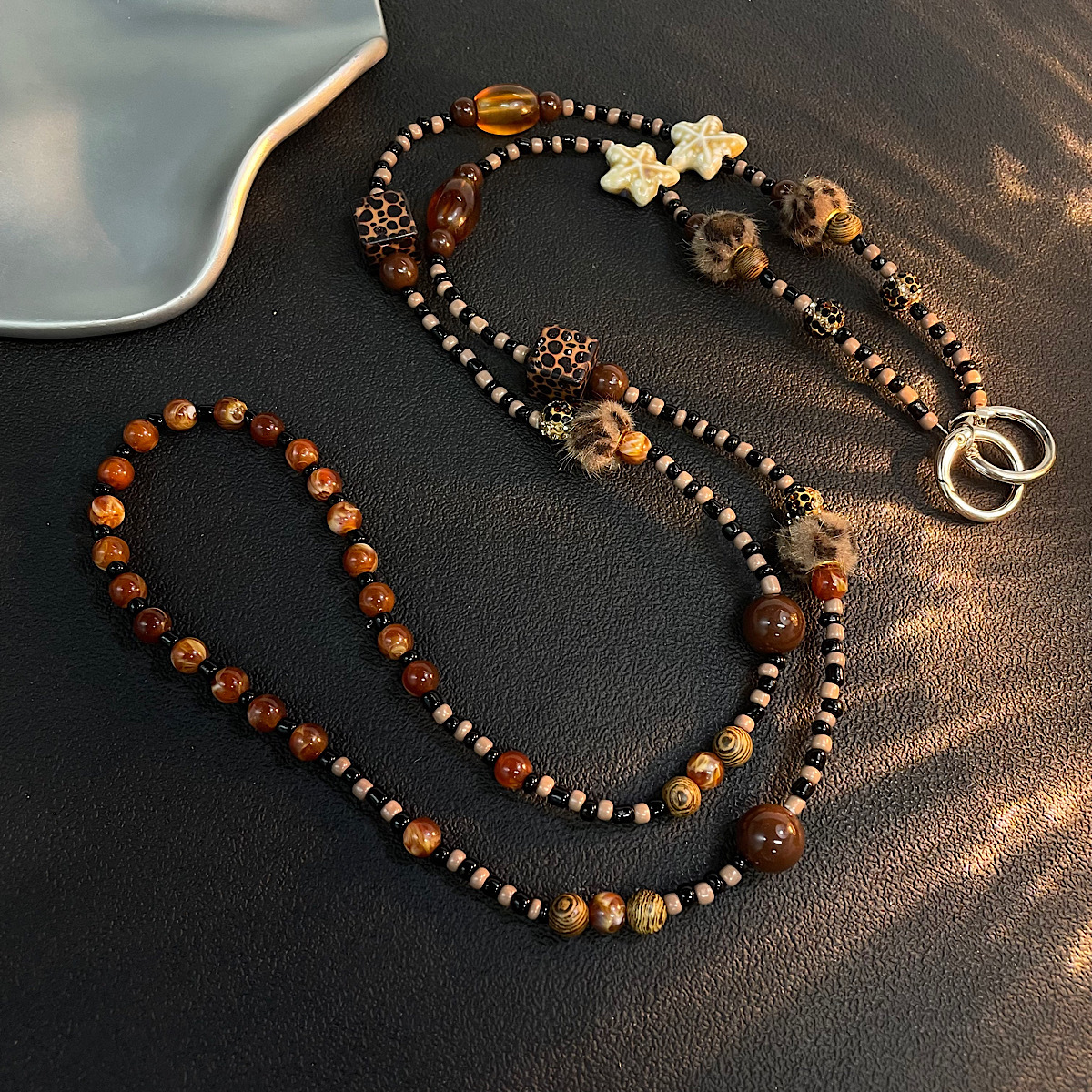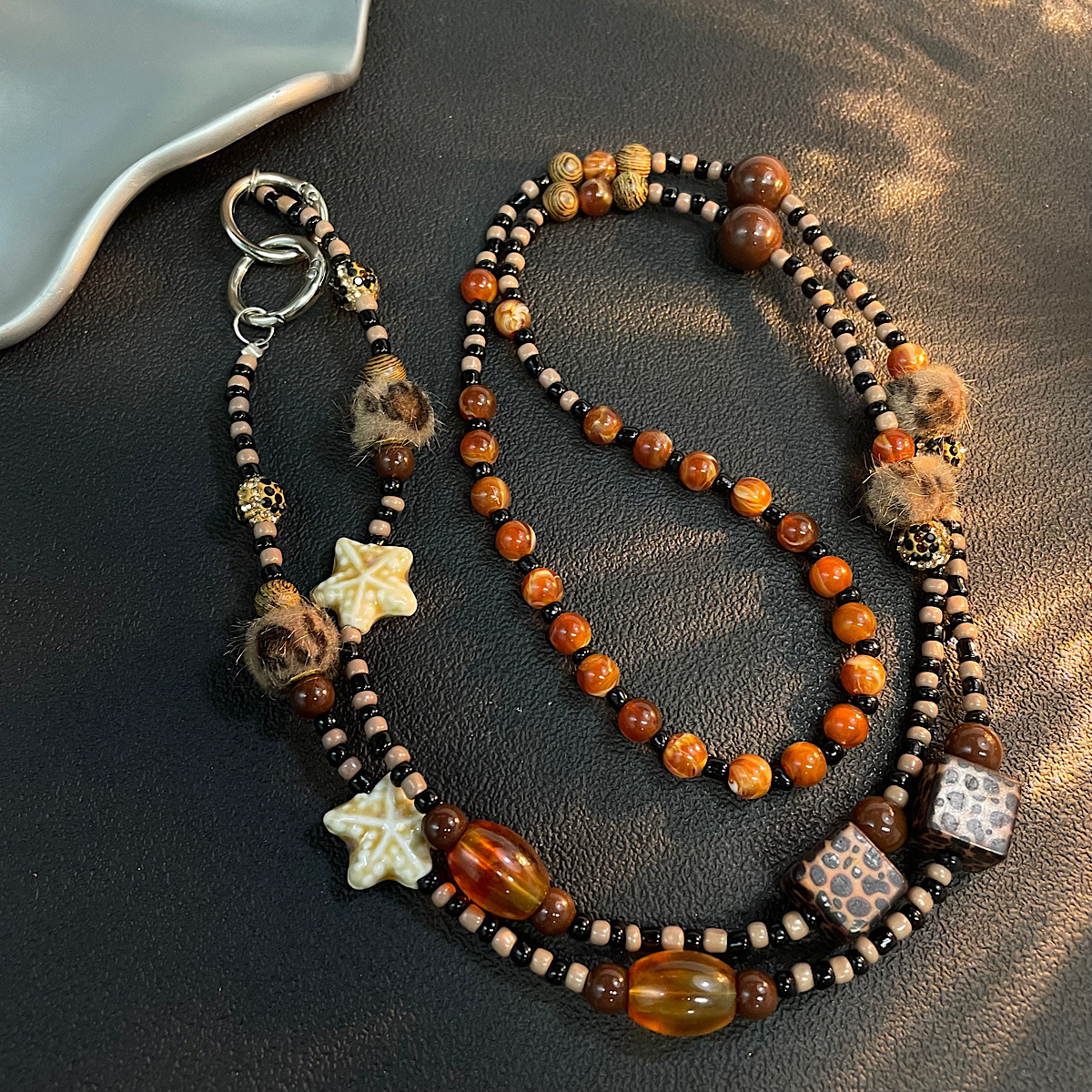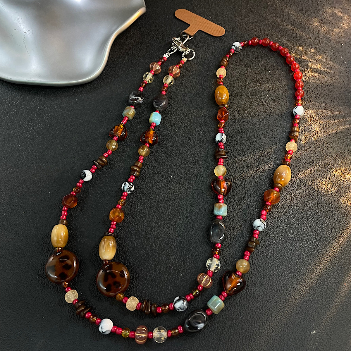 复古美拉德手机链棕色异形串珠挂链手腕式手链斜挎背带时尚高级