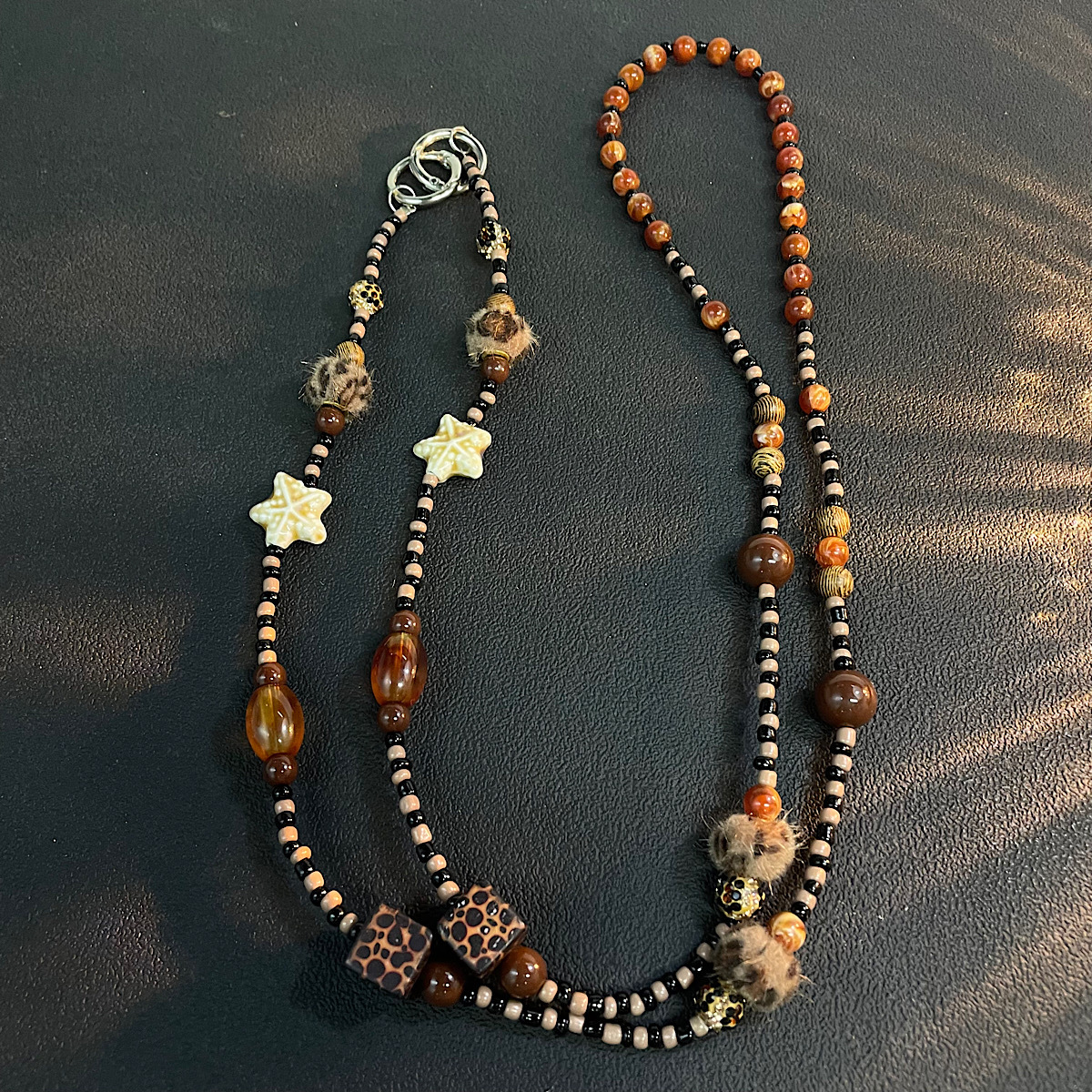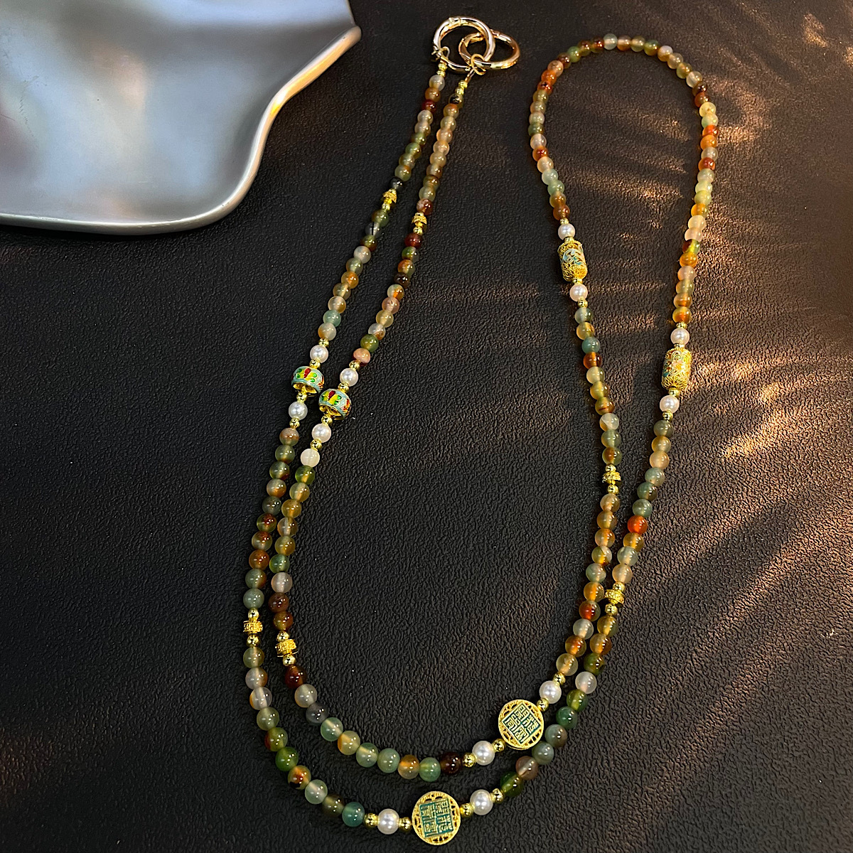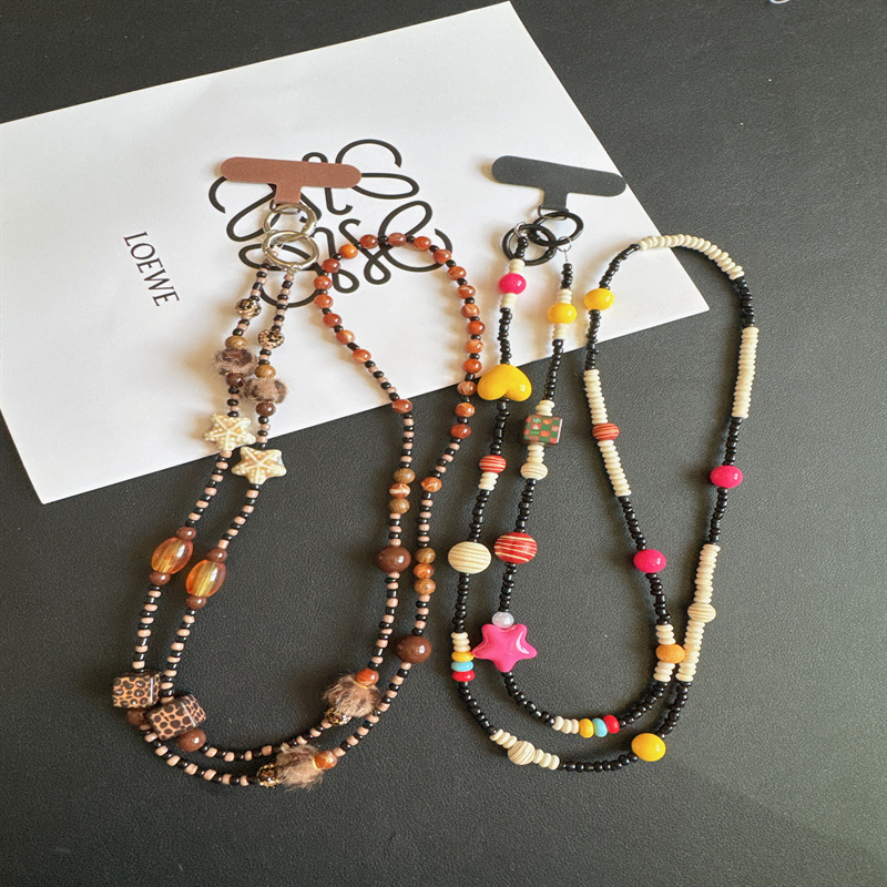 复古美拉德手机链棕色异形串珠挂链手腕式手链斜挎背带时尚高级