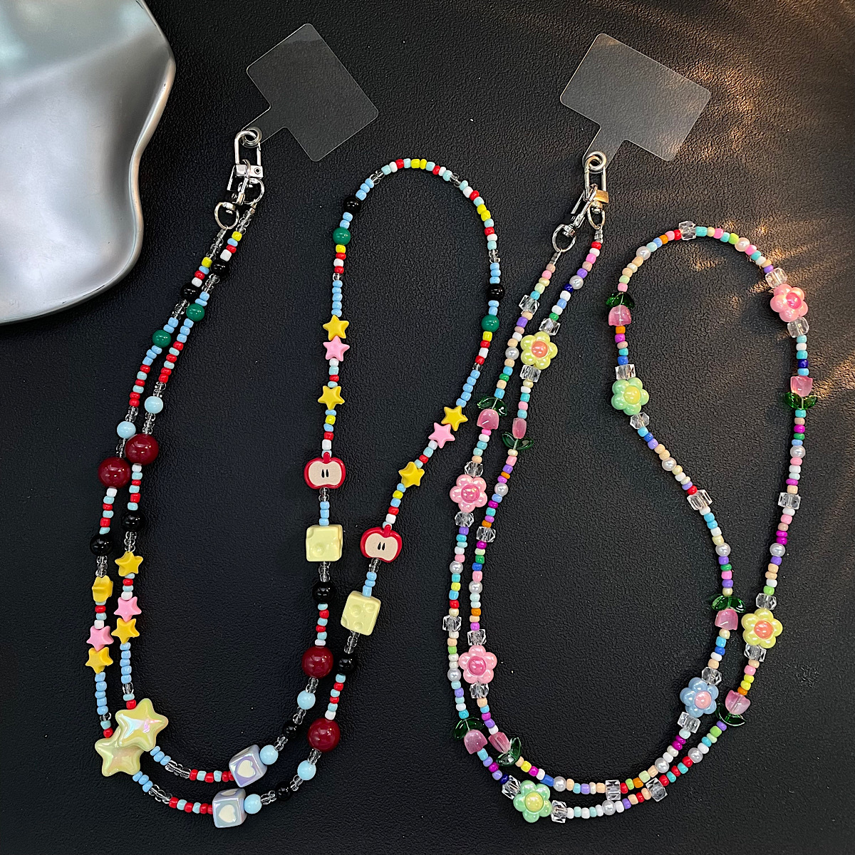 インサマーフラワー星雲スマイリーダブルボタン携帯電話チェーンヘビーデューティドーパミンスーパーホットビーズガールハート