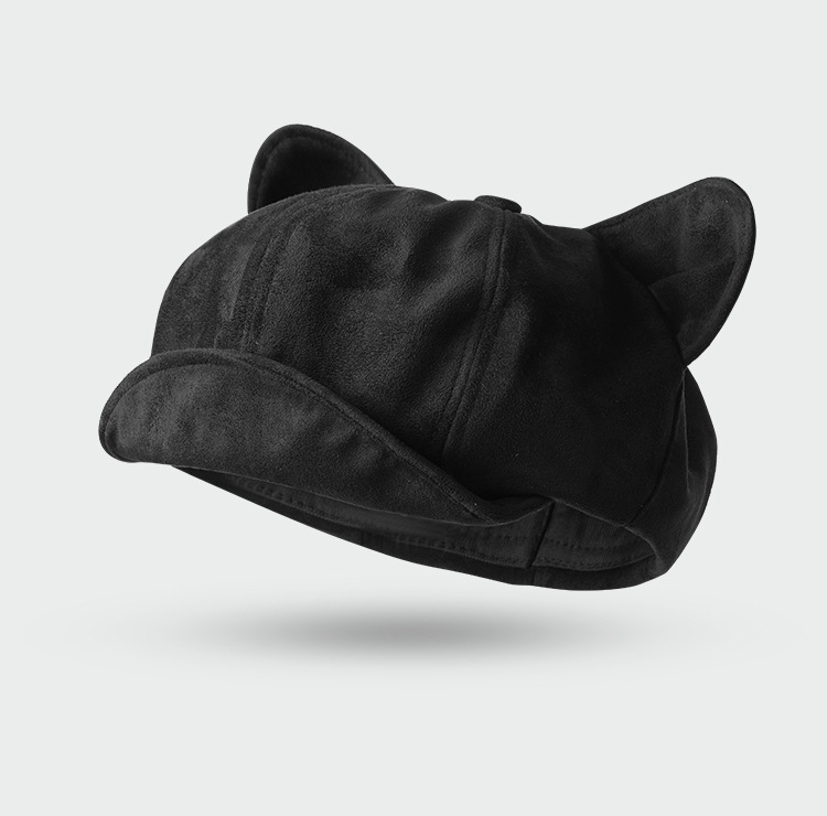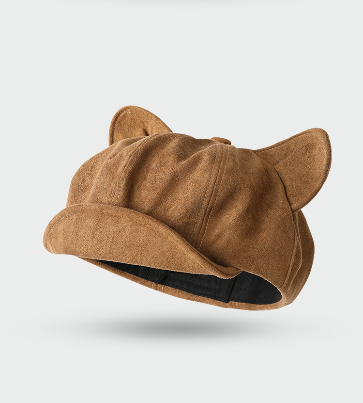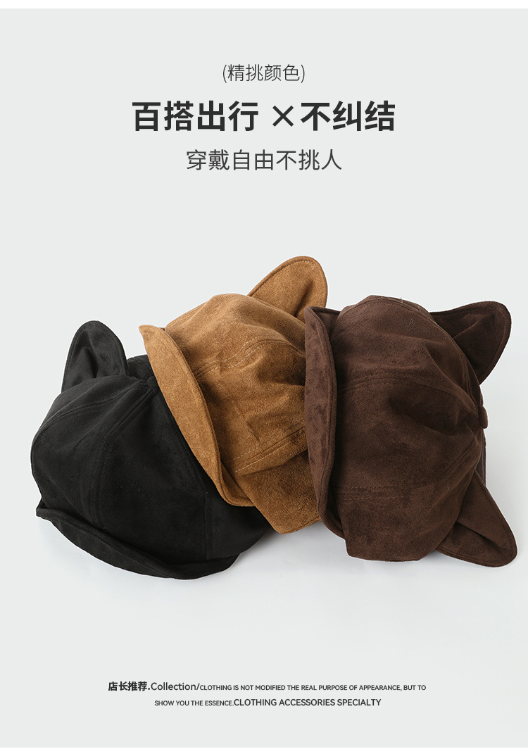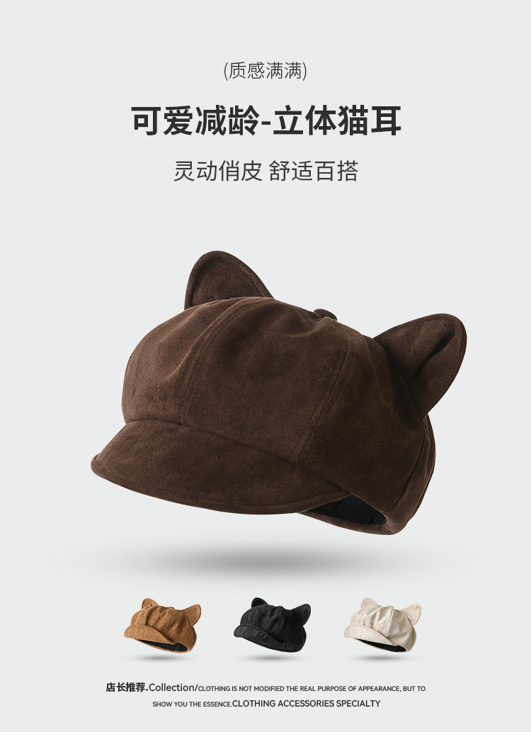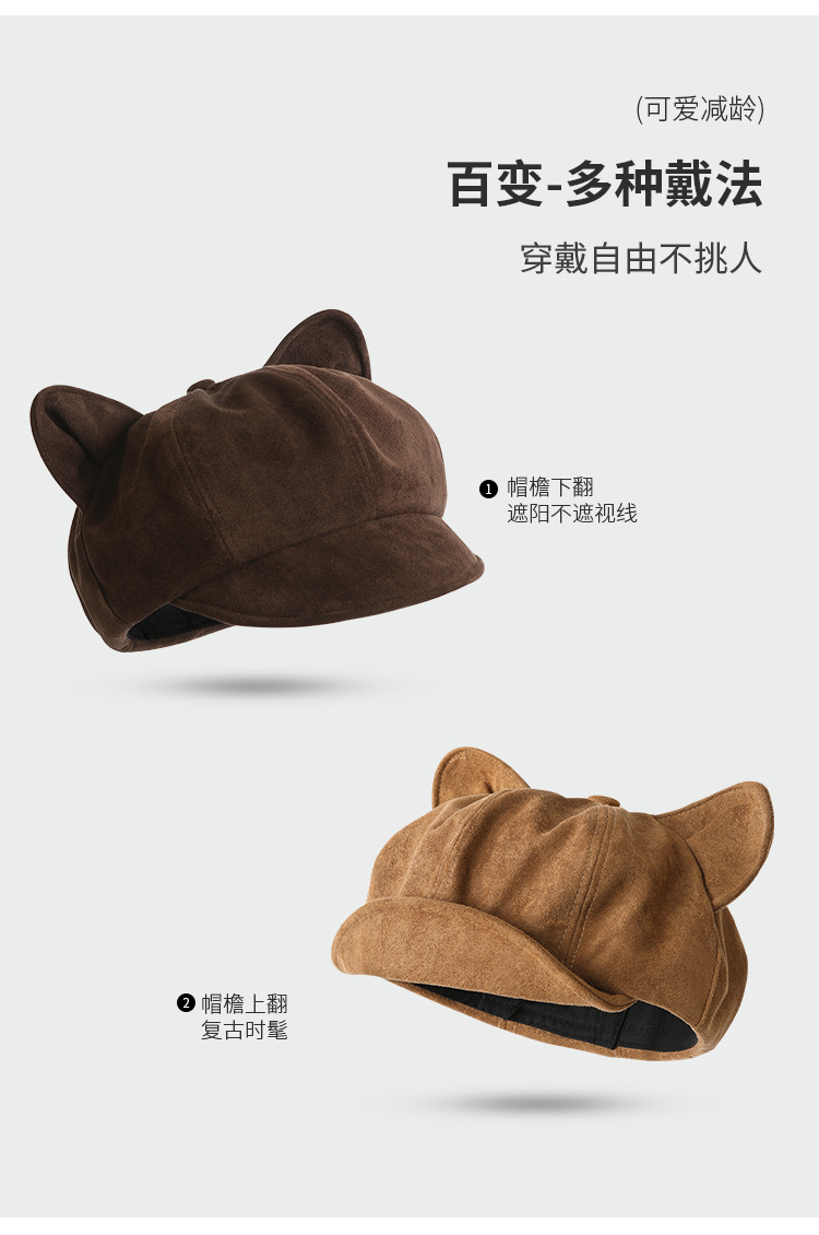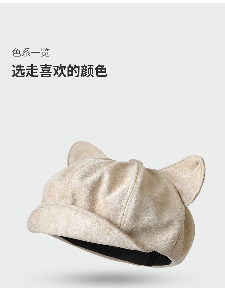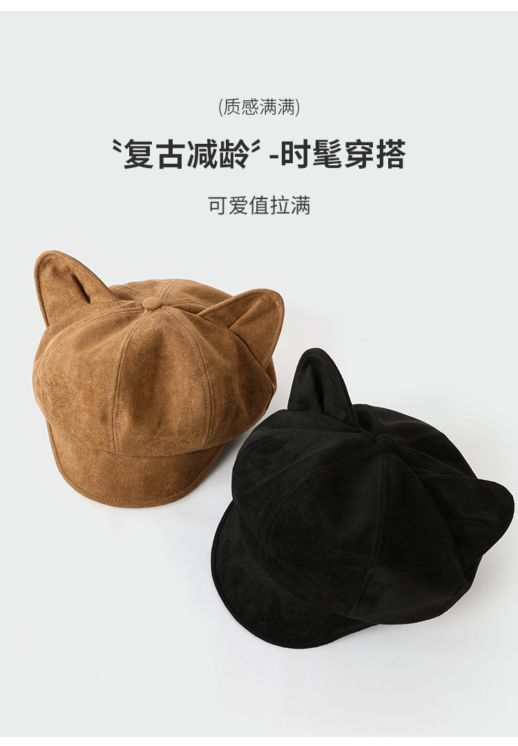 2025新款麂皮绒八角帽女秋冬时尚氛围感猫耳朵报童帽显脸小贝雷帽