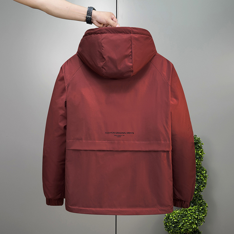 太って大きいサイズのジャケットの男性の春秋の新型のカジュアルな帽子の上着のデブのゆったりしている潮流の防風のコートの男性