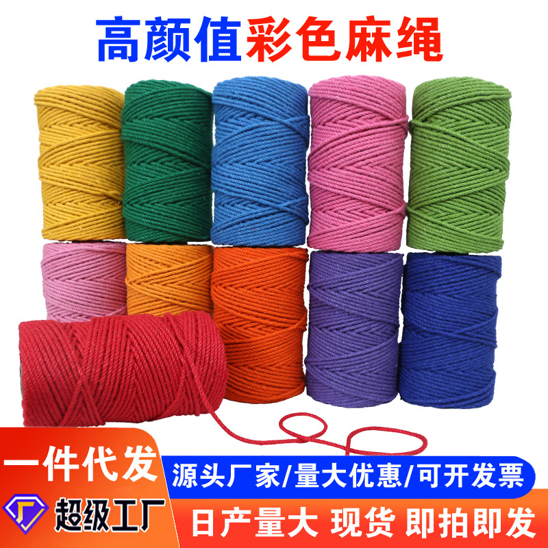 カラー麻縄4.5mmの多種の色の装飾の黄色の麻縄の縛り用の色の麻縄のメーカーは編み物の麻縄を供給します。