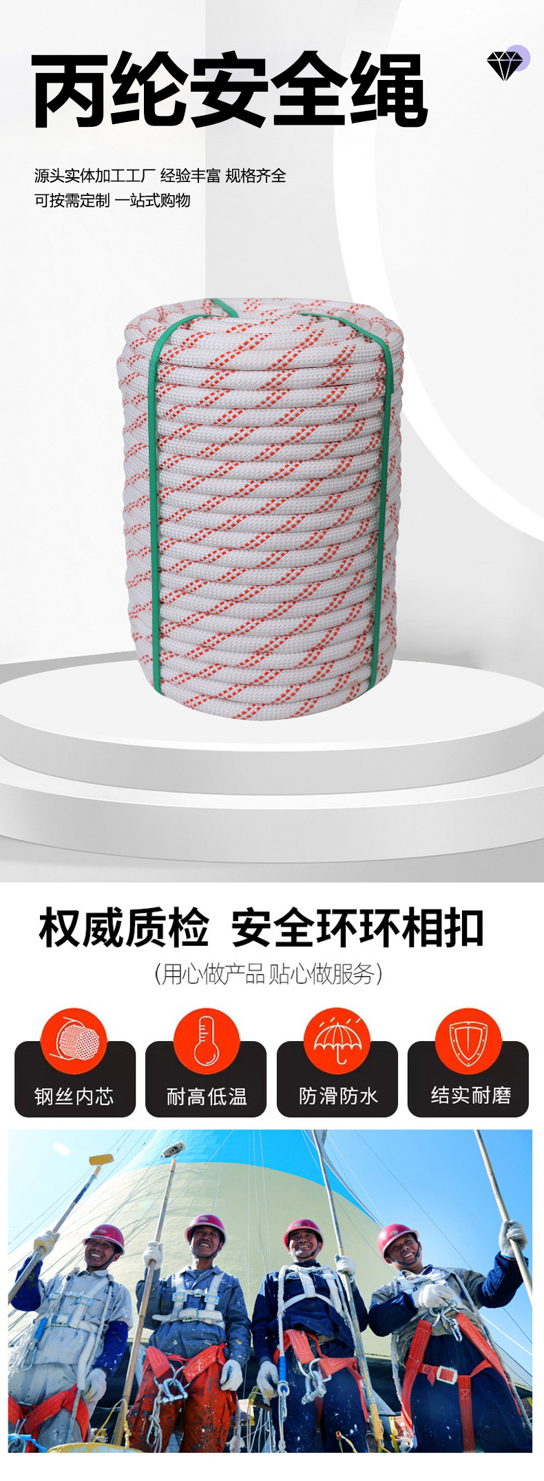 高所作業安全ロープポリプロピレン耐摩耗救助ロープ鋼線芯登山ロープ脱出ナイロンポリエステルロープ