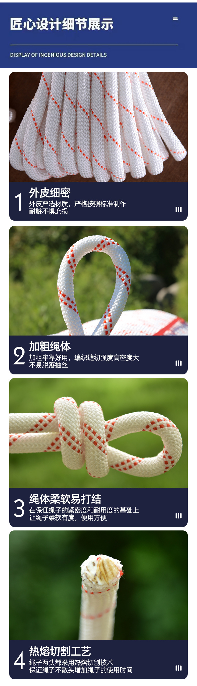 高空作业安全绳户外丙纶登山绳耐磨应急逃生绳高强度电力牵引绳