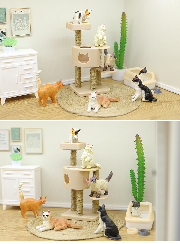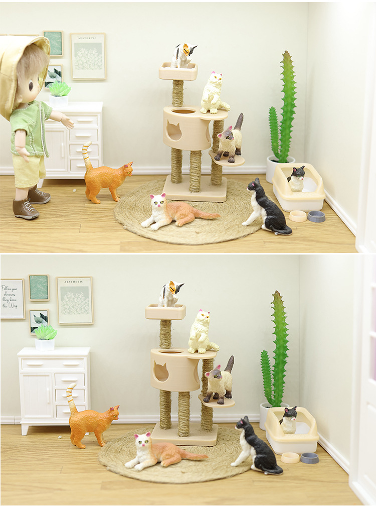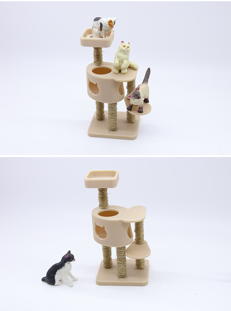 1:12dollhouse娃娃屋迷你仿真多层猫爬架猫咪玩具微缩场景模型