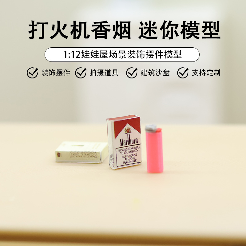 迷你打火机模型袖珍打火机含底座微缩香烟娃娃屋迷你装饰摆件模型