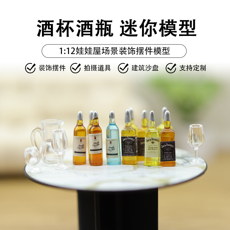 Dollhouse娃娃屋场景配件装饰品红酒瓶迷你高脚杯微缩食玩模型