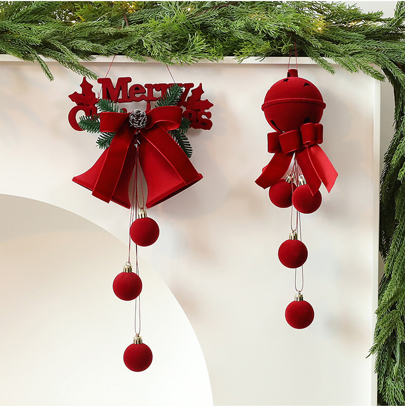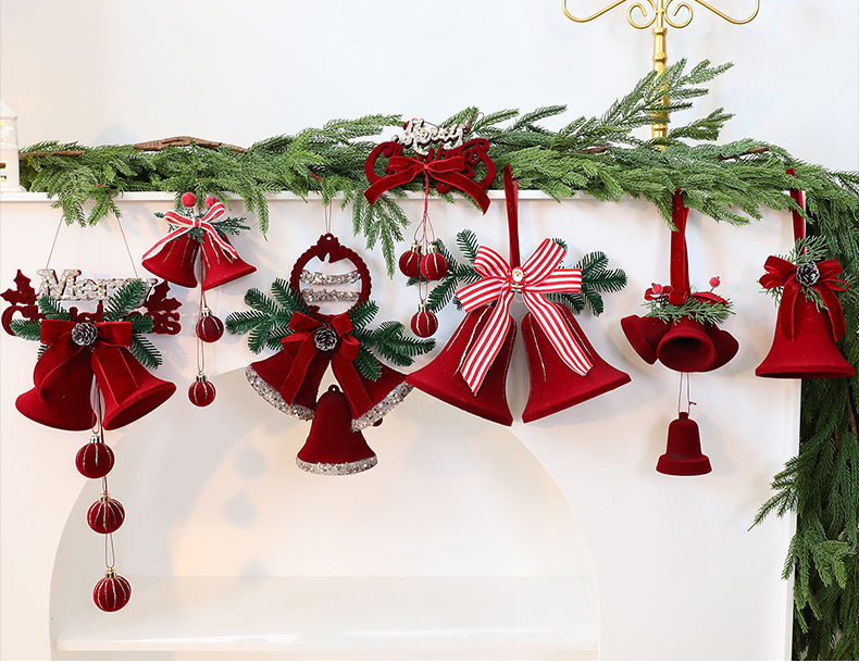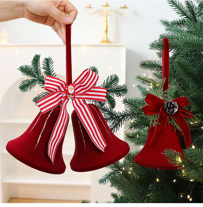 圣诞节装饰品新年植绒圣诞铃铛挂件圣诞树装饰品圣诞氛围场景挂饰