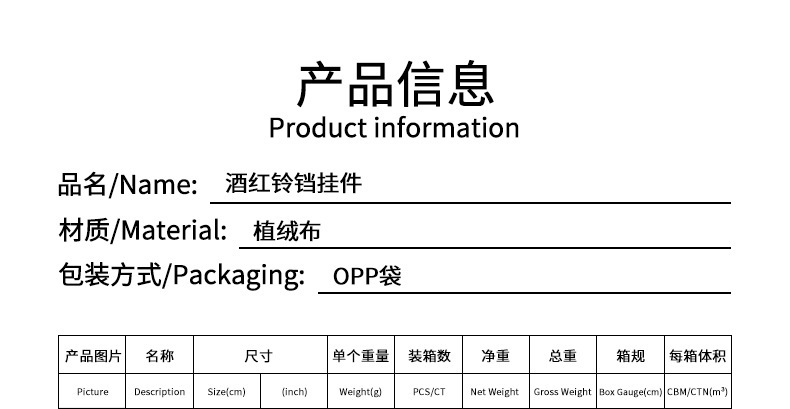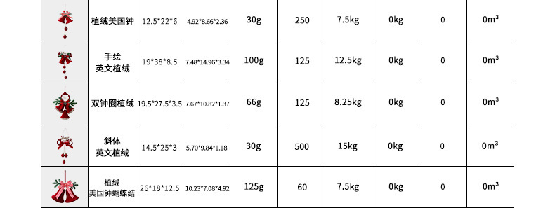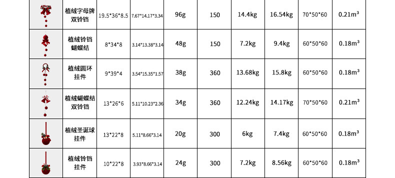 规格 植绒圣诞球B款,植绒圣诞球挂件,植绒铃铛挂件,植绒蝴蝶结双铃铛,植绒美国钟-中号,双钟圈植绒-B,植绒圆环挂件,手绘英文植绒-A,植绒美国钟-C,斜体英文植绒-D,植绒美国钟蝴蝶结-E,植绒字母牌双铃铛,植绒铃铛蝴蝶结