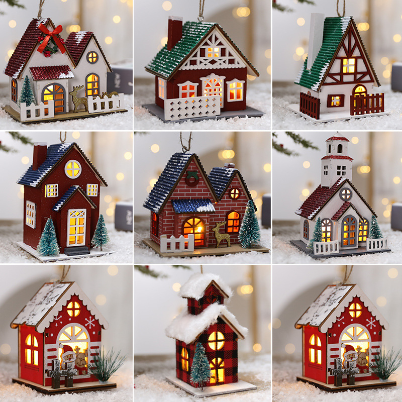 クリスマス山小屋のペンダントdiy発光創意雪景色クリスマスのデスクトップ発光木の家の置物