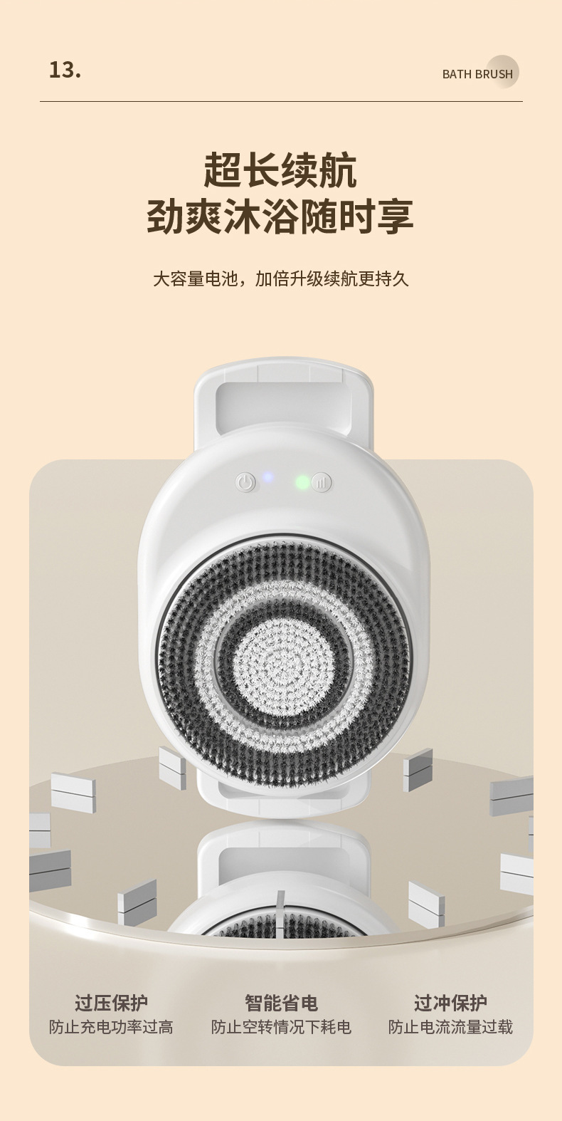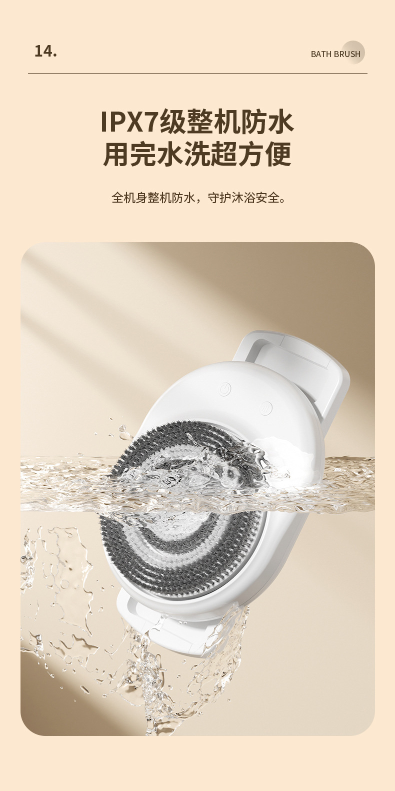 跨境电动洗澡刷搓背神器后背搓澡仪充电搓灰搓泥多功能按摩沐浴刷