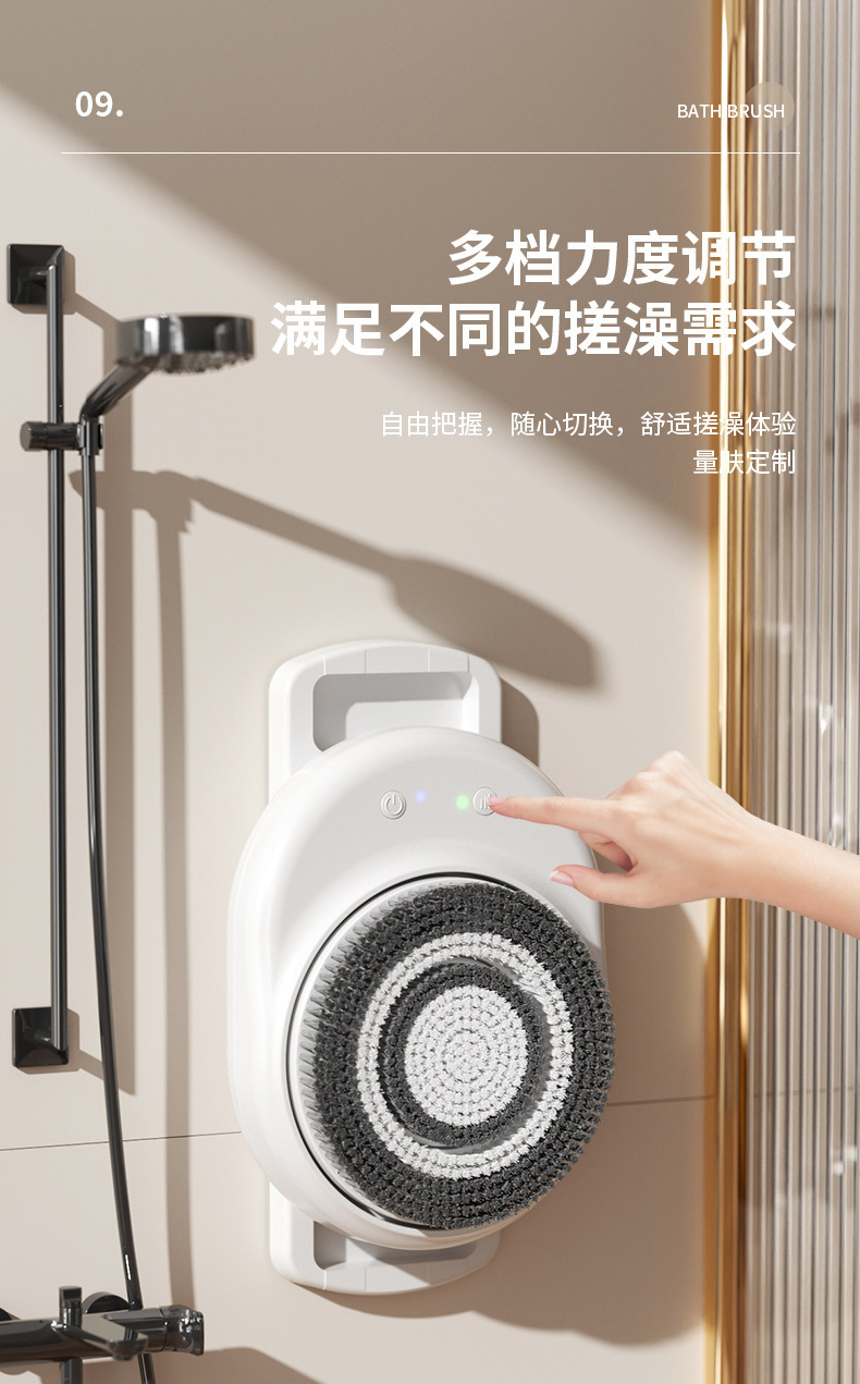 外贸跨境电动洗澡器全自动搓澡搓背器沐浴刷浴刷挂壁式电动搓澡仪