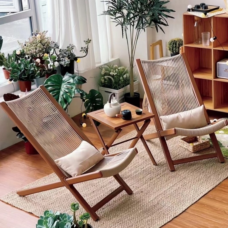 户外花园休闲躺椅阳台小桌椅北欧风庭院藤编一桌二椅露天懒人躺椅