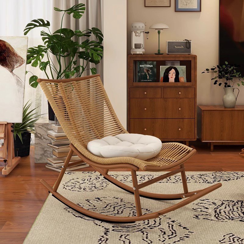 バルコニーロッキングチェアリクライニングチェア大人のレジャーチェアリビングルームホーム中国の怠惰な椅子屋外籐シングルロッキングチェア