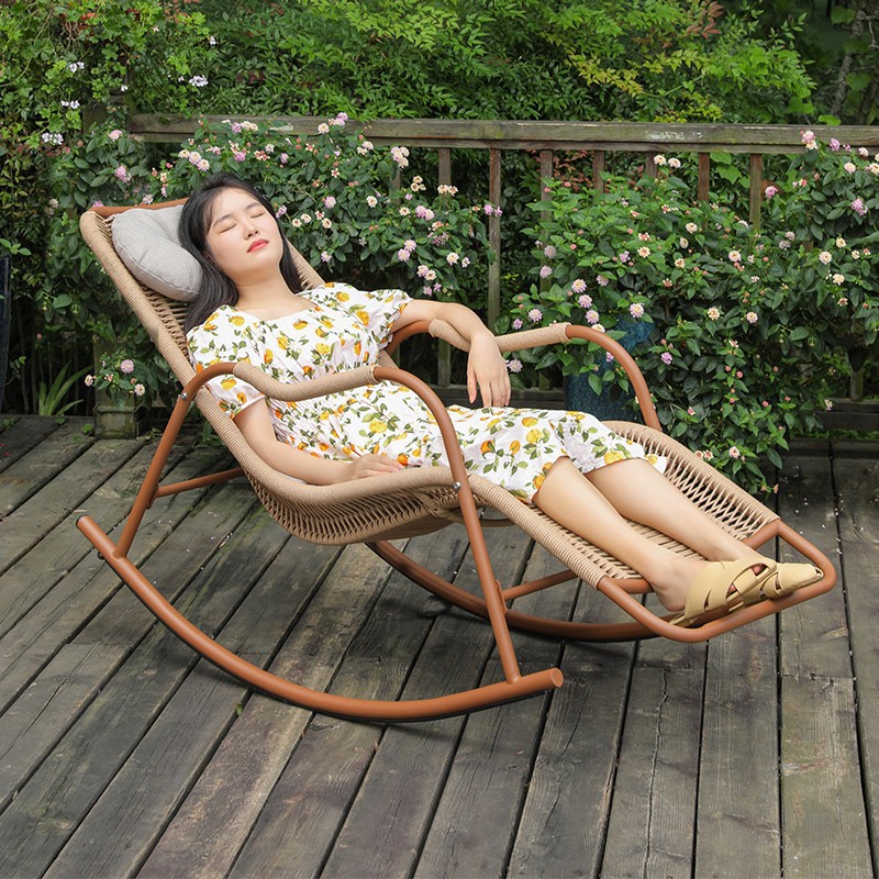ロッキングチェア、リクライニングチェア、大人用怠惰なソファ、睡眠用レジャーバルコニー籐ソファチェア、インターネット有名人の屋外ロッキングチェア