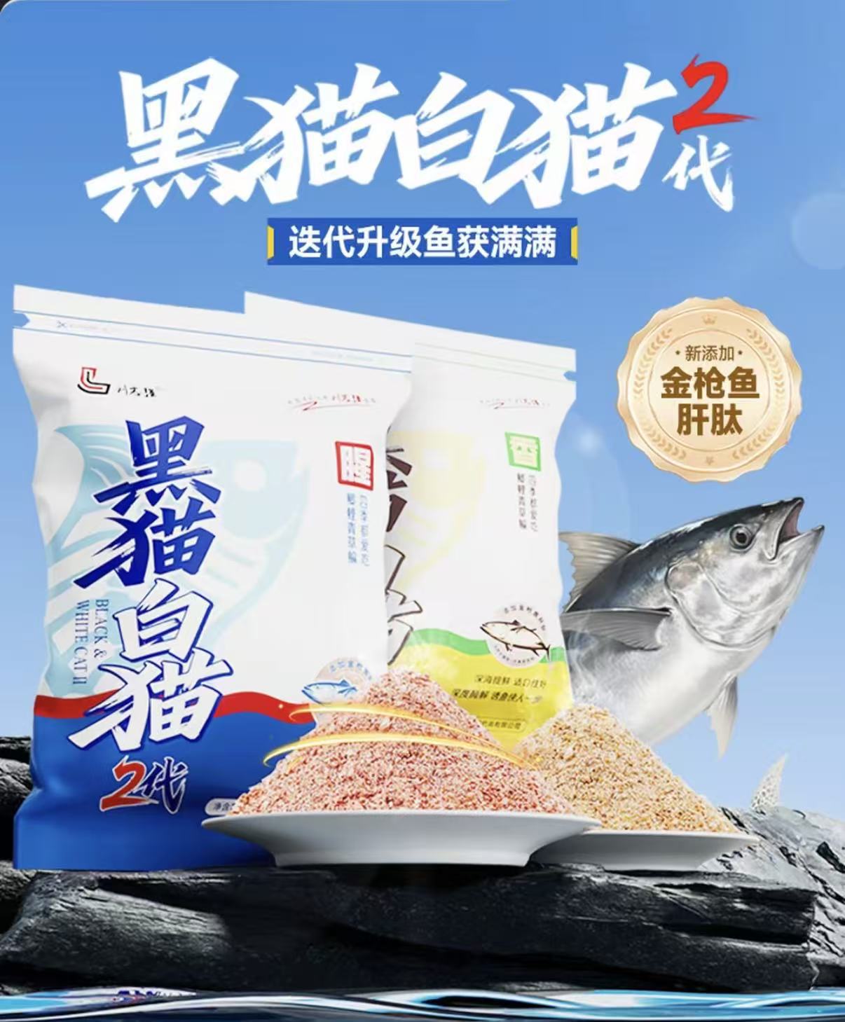 刘志强黑猫白猫二代金枪鱼肝肽鲫鱼野钓综合饵60袋/件