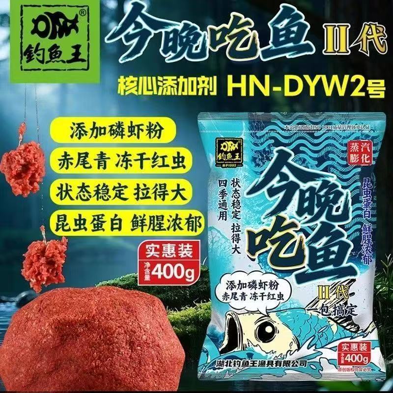 钓鱼王鱼饵新品今晚吃鱼二代400g冻干红虫赤尾青一包搞定60包一件