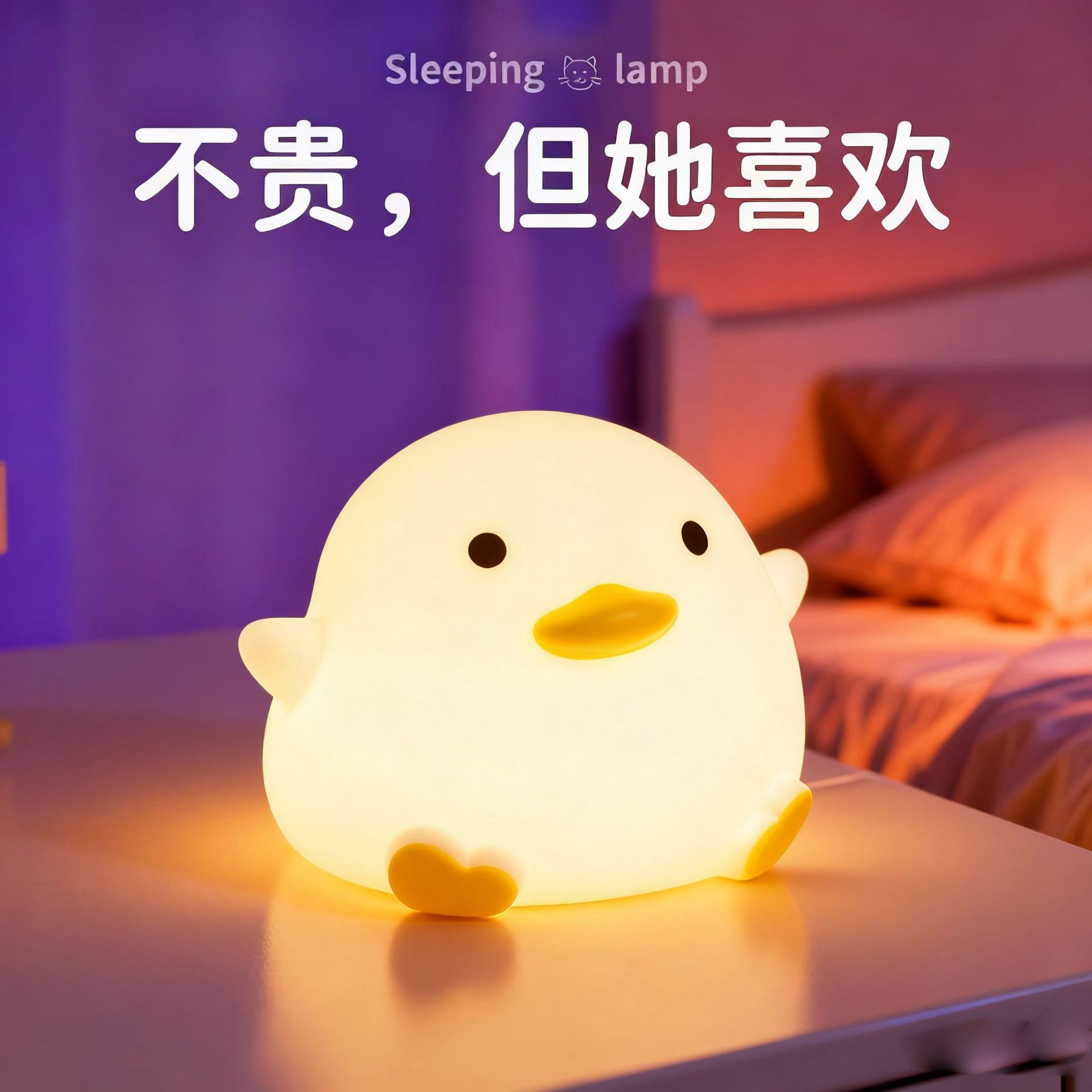 小夜灯网红爆款拍拍灯豆豆鸭硅胶床头灯伴睡氛围灯家用高级感台灯