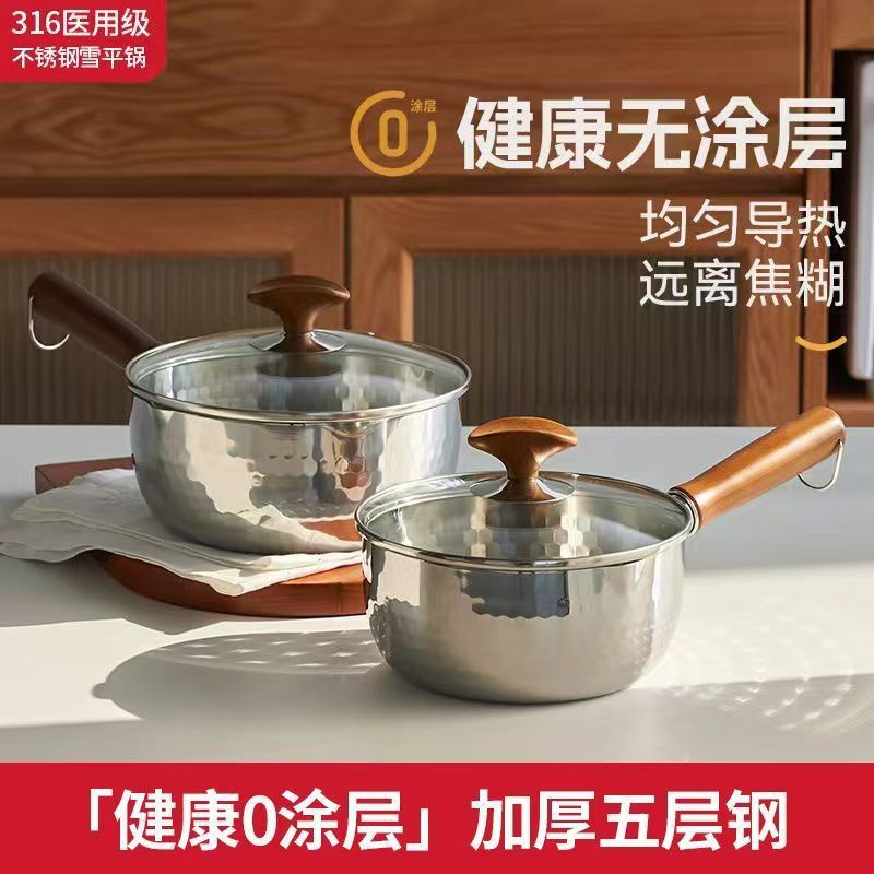 316ステンレス鋼雪平鍋、日本式木柄平底鍋、離乳食鍋、泡立て器、槌目模様ミルク鍋、ノンスティックスープ鍋
