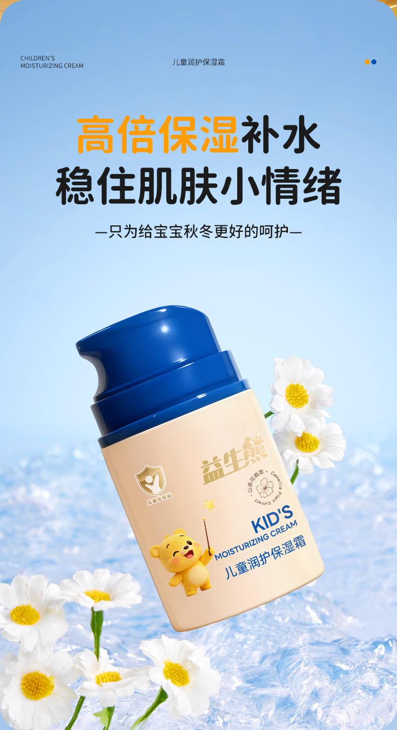 益生熊儿童润护保湿霜补水保湿改善干燥呵护嫩肌儿童面霜批发抖音