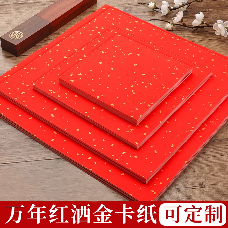万年紅撒金カード紙赤色宣紙書道専用に厚い福字斗方作品紙空白手書き創作