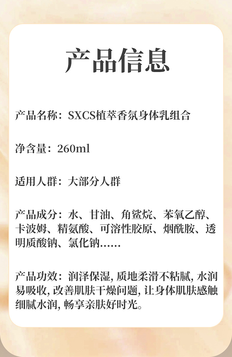 SXCS植萃香氛身体乳温和持久留香滋润秋冬季改善干燥透亮嫩肤补水