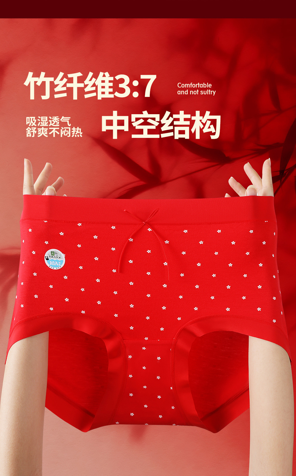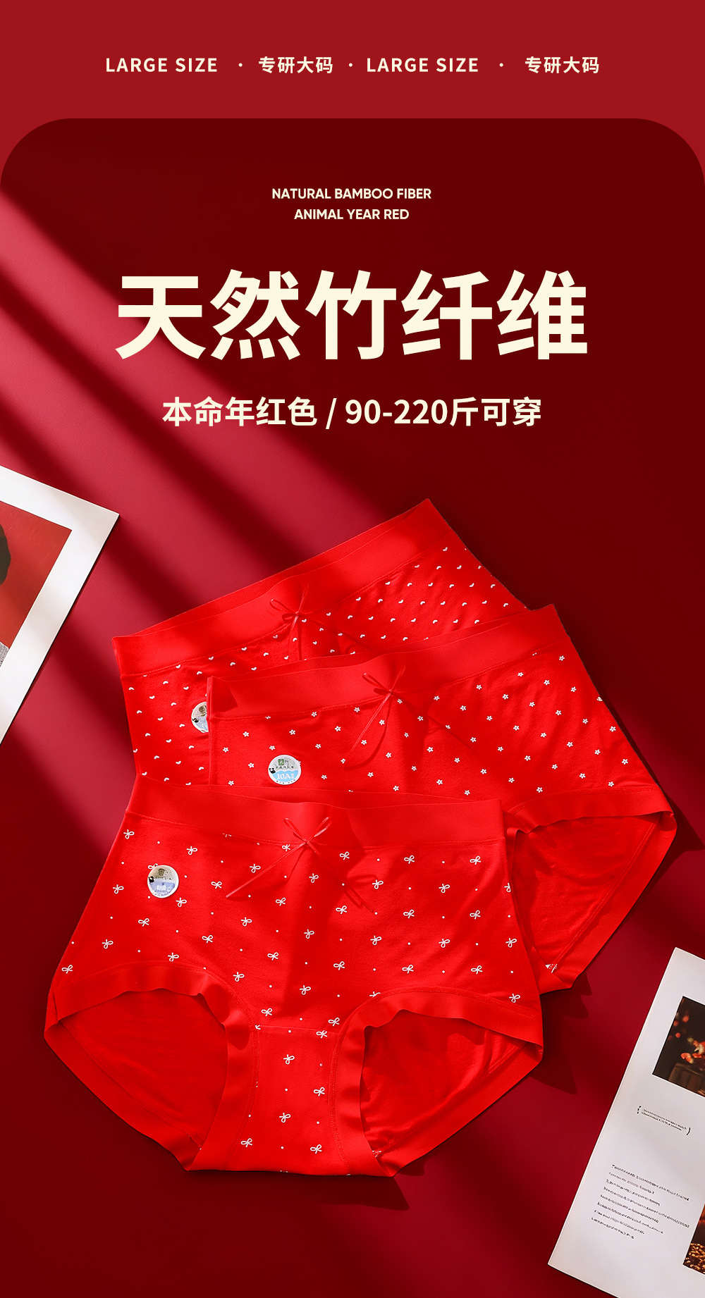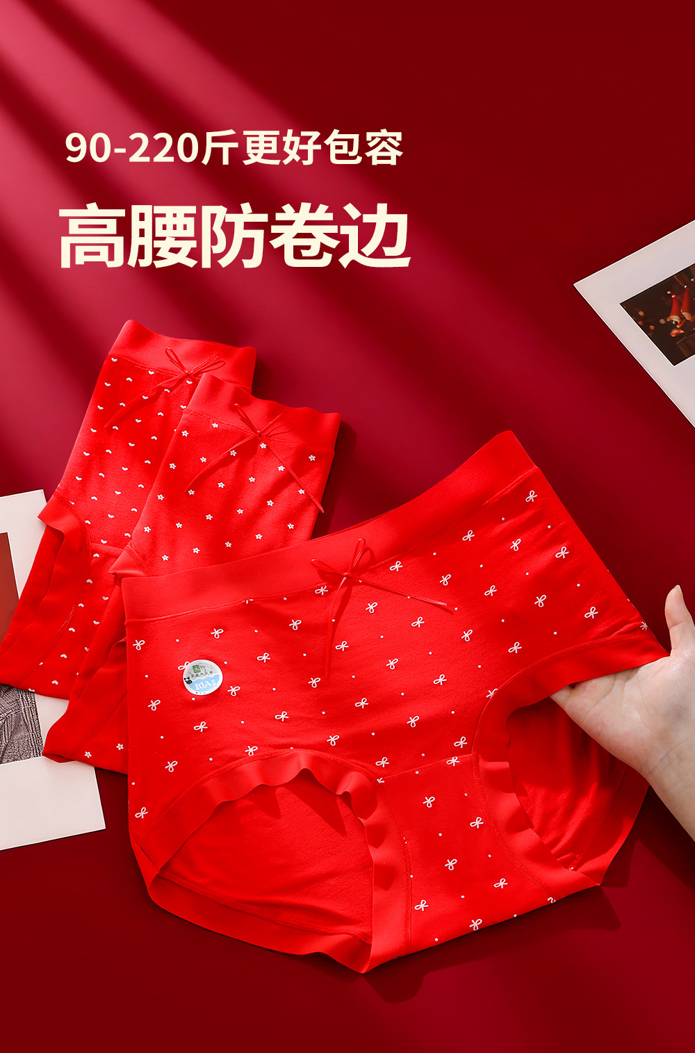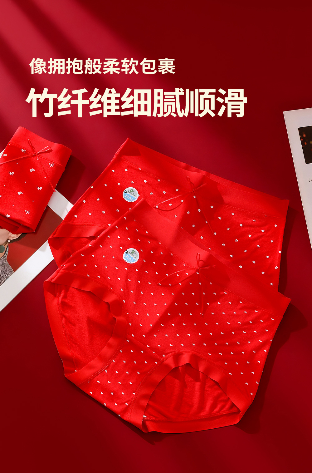 好运来本命年红色内裤结婚纯棉蕾丝边60支竹纤维高腰大码三角内裤