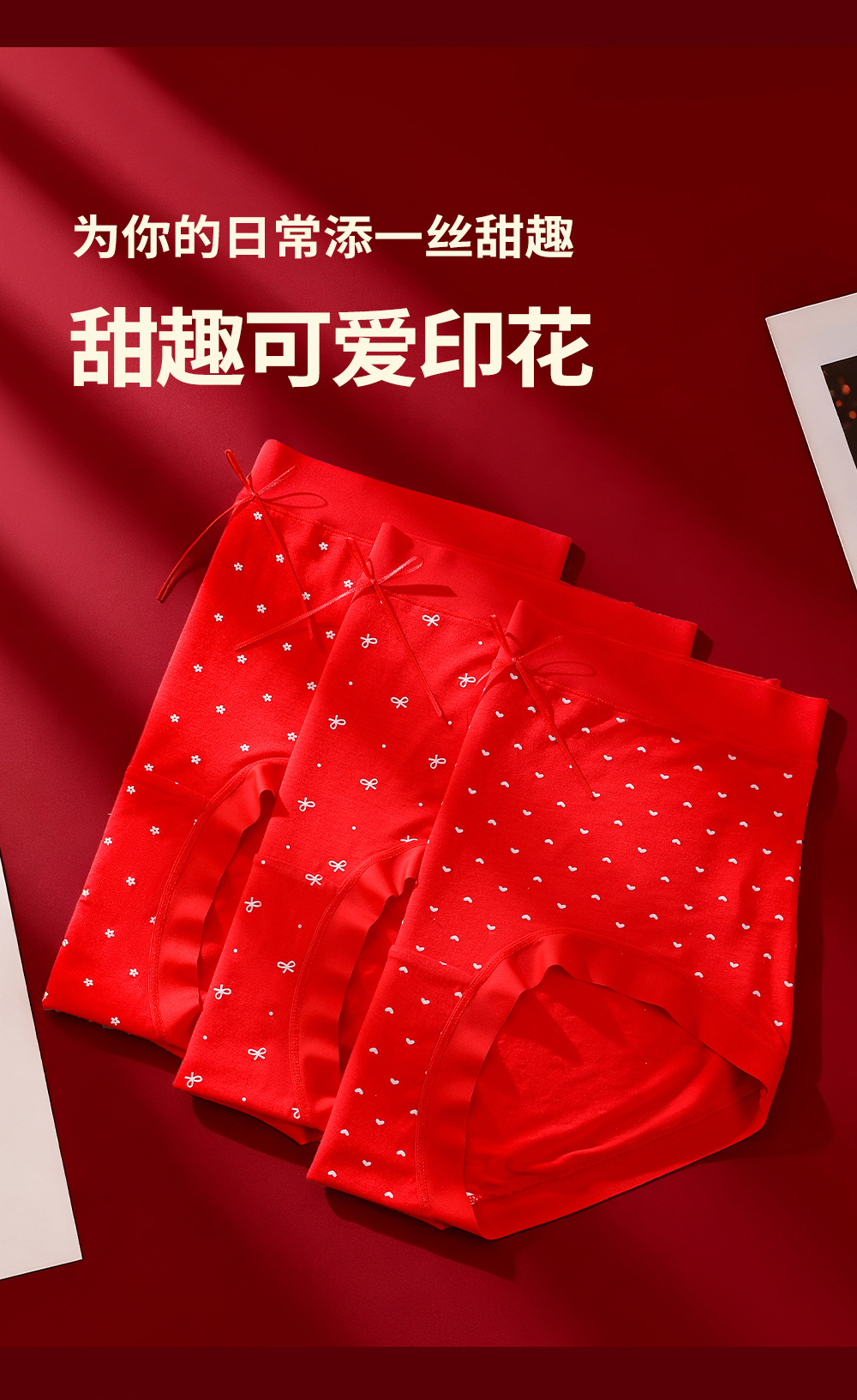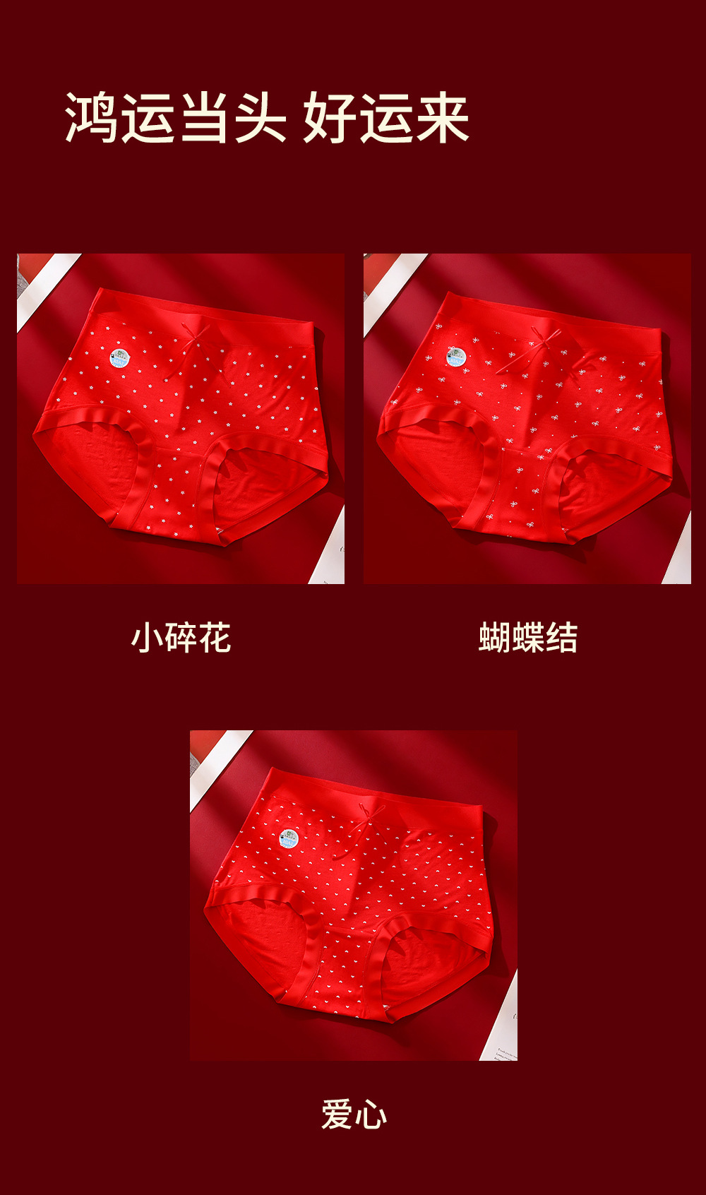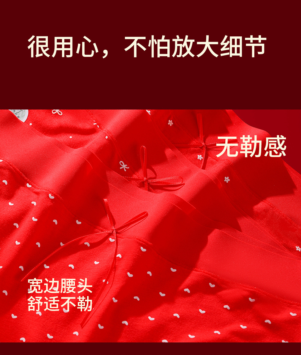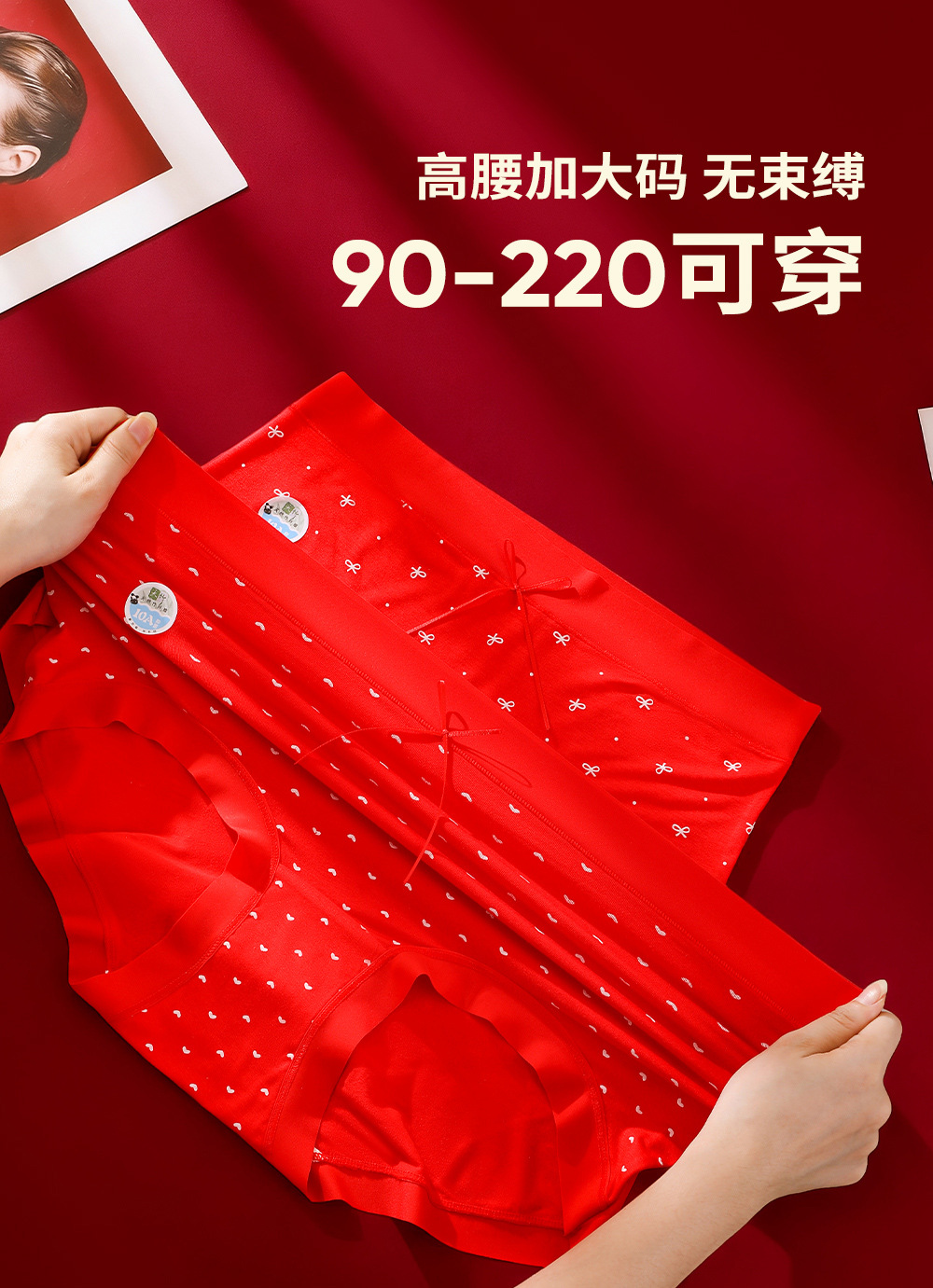 好运来本命年红色内裤结婚纯棉蕾丝边60支竹纤维高腰大码三角内裤