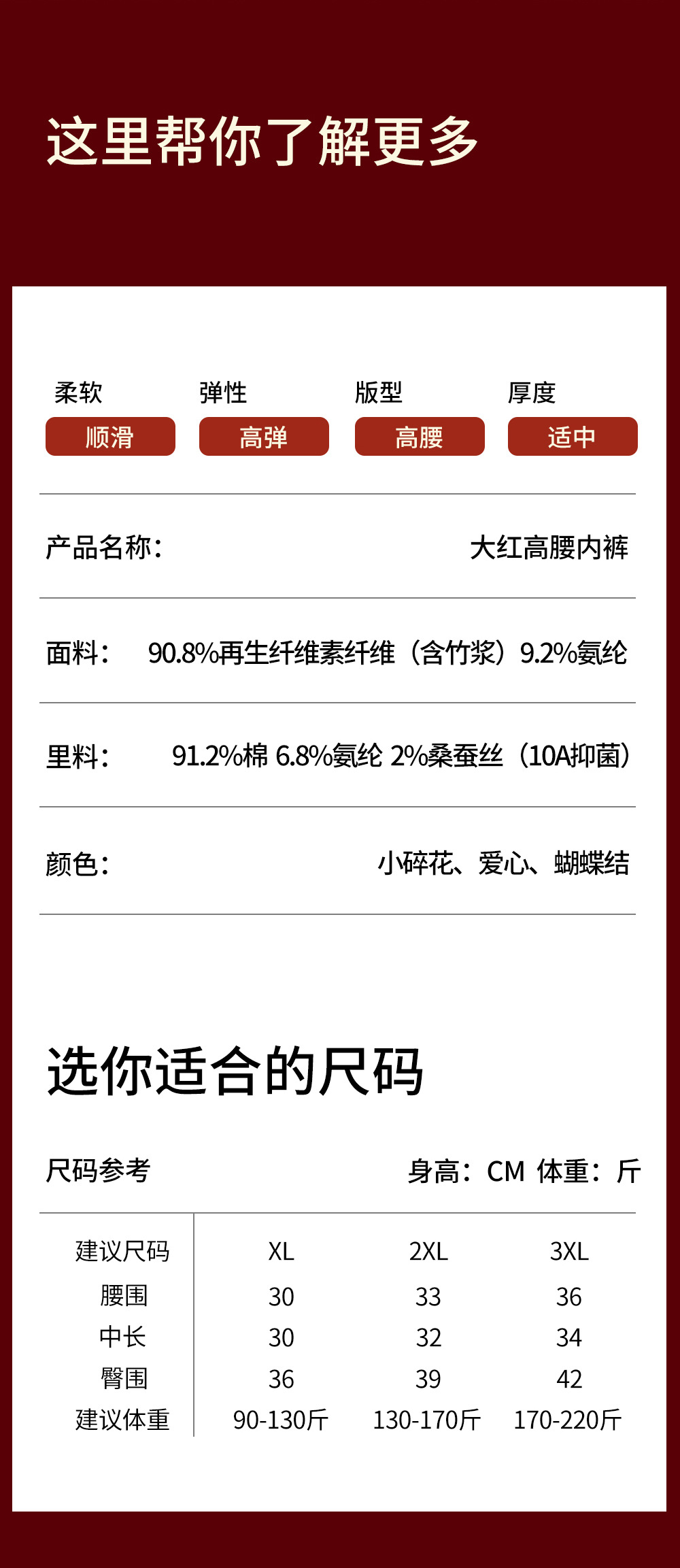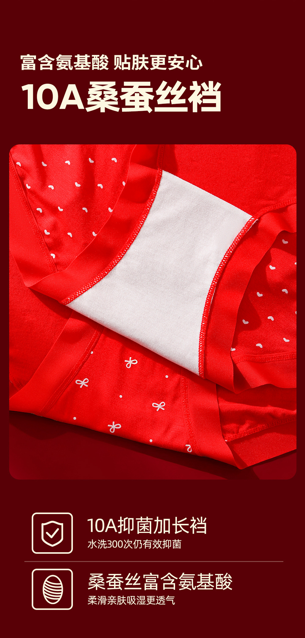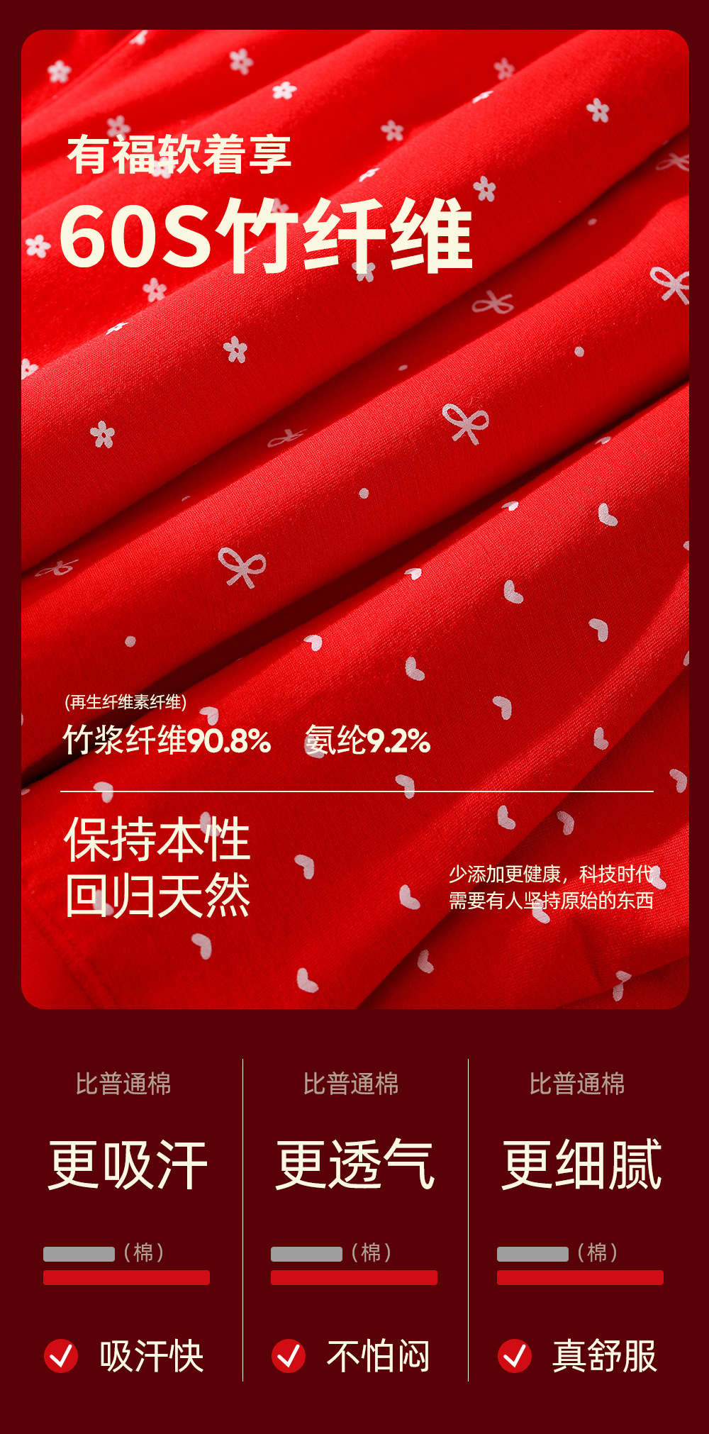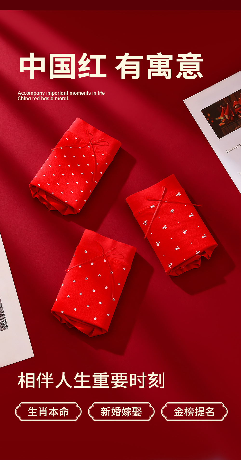 好运来本命年红色内裤结婚纯棉蕾丝边60支竹纤维高腰大码三角内裤