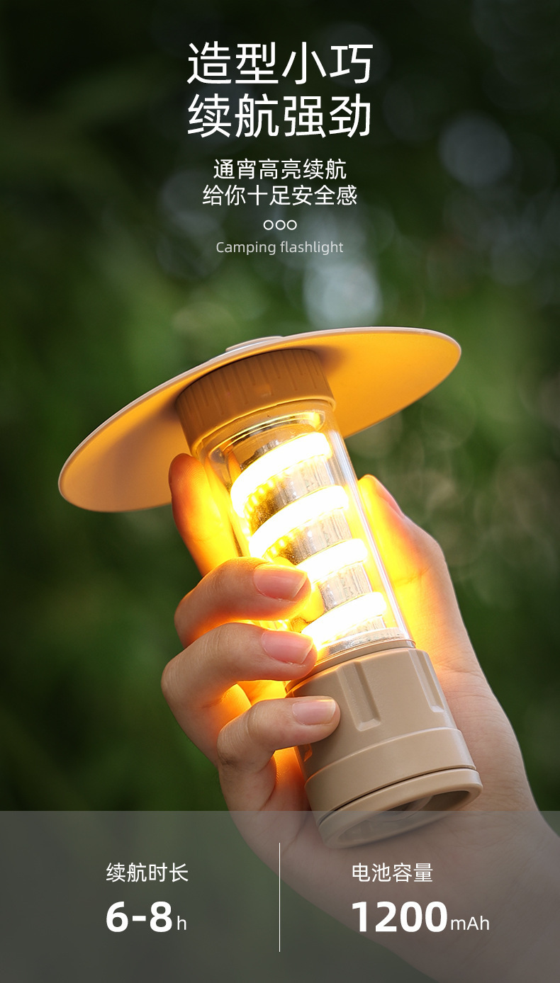 跨境爆款露营灯户外照明手电超长续航充电野营灯氛围灯户外帐篷灯