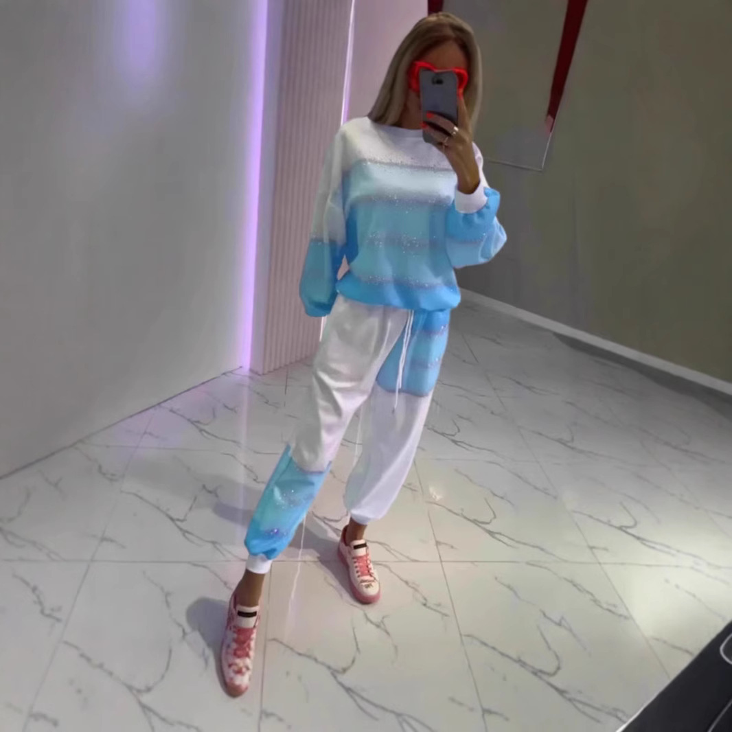 2026年 海外人気商品 欧米風グラデーションカラーのカジュアルスーツ 上下セット(トップスとドローストリングパンツ)