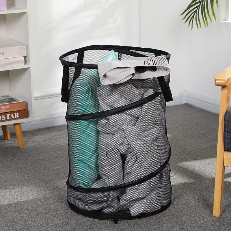 折りたたみランドリーバスケット 汚れた衣類バスケット メッシュタイプ 折りたたみランドリーバケツ ポップアップランドリーバケツ シリンダータイプ収納