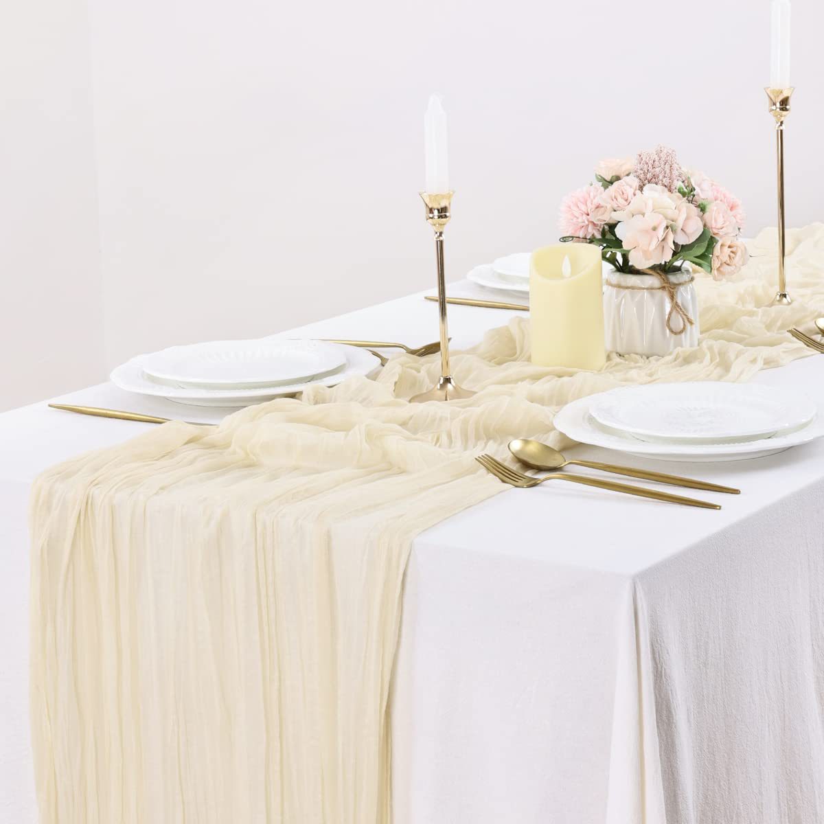 バリシーワイドテーブルランナー、麻織テーブルクロス、ウェディングパーティー装飾、プリーツ卸売、業務用テーブルランナー装飾